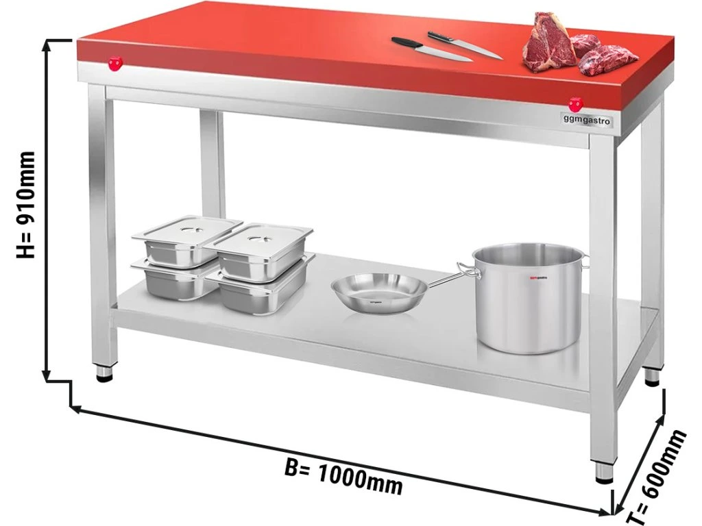 Stół roboczy ze stali nierdzewnej PREMIUM - 1000x600 mm - z półką dolną bez panelu tylnego włącznie z płytą do cięcia