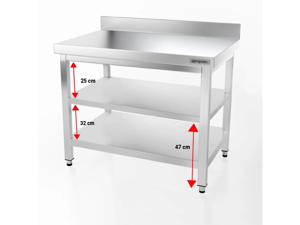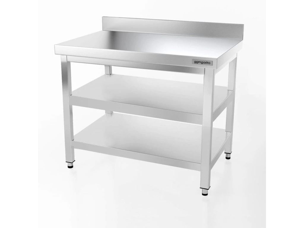 Stół roboczy PREMIUM ze stali nierdzewnej - 1000x700 mm - z półką dolną, panelem tylnym & półką pośrednią