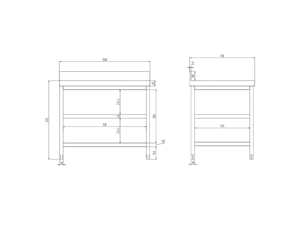 - Stół roboczy z dolną i półką pośrednią