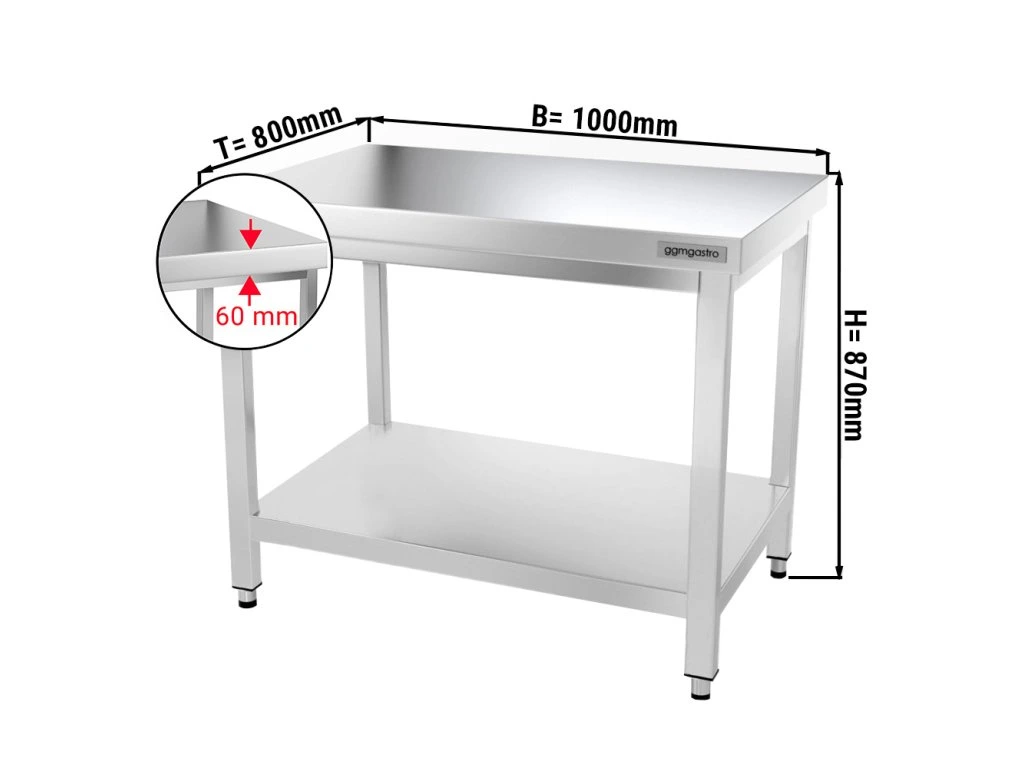 Stół roboczy PREMIUM ze stali nierdzewnej - 1000x800 mm - z półką dolną bez panelu tylnego