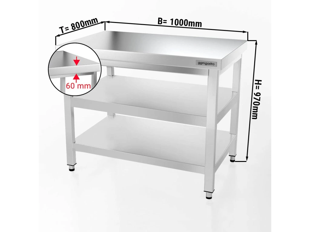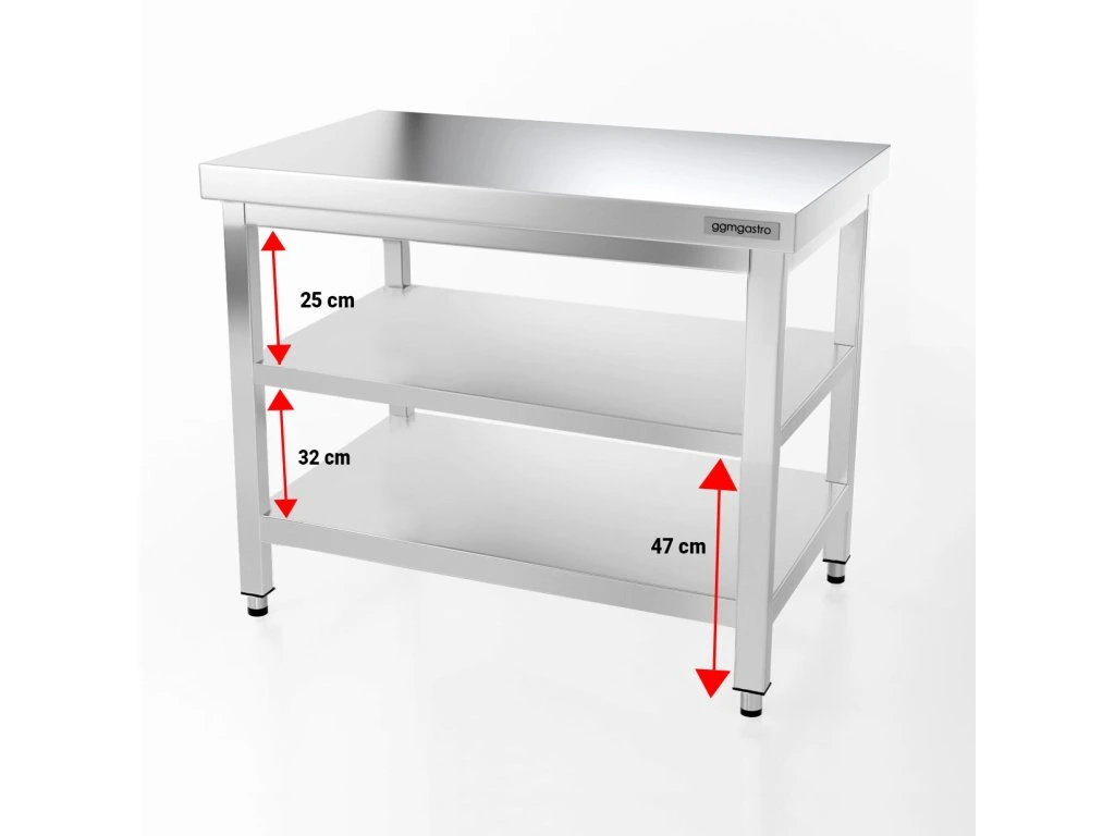 Stół roboczy PREMIUM ze stali nierdzewnej - 1000x800 mm - z półką dolną i półką pośrednią