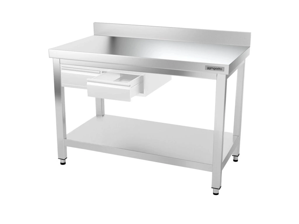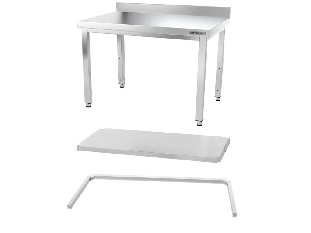 Stół roboczy PREMIUM ze stali nierdzewnej - 1200x600 mm - z podstawą, panelem tylnym i wspornikiem