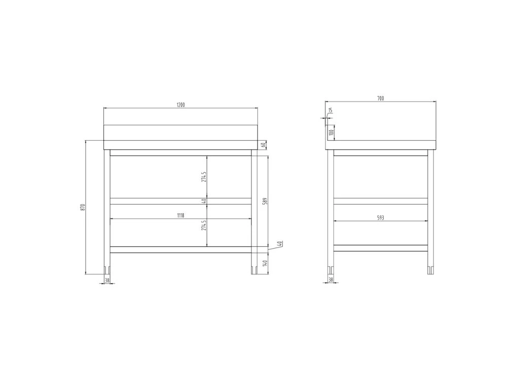 - Płyta robocza z dwoma ściankami ze stali nierdzewnej