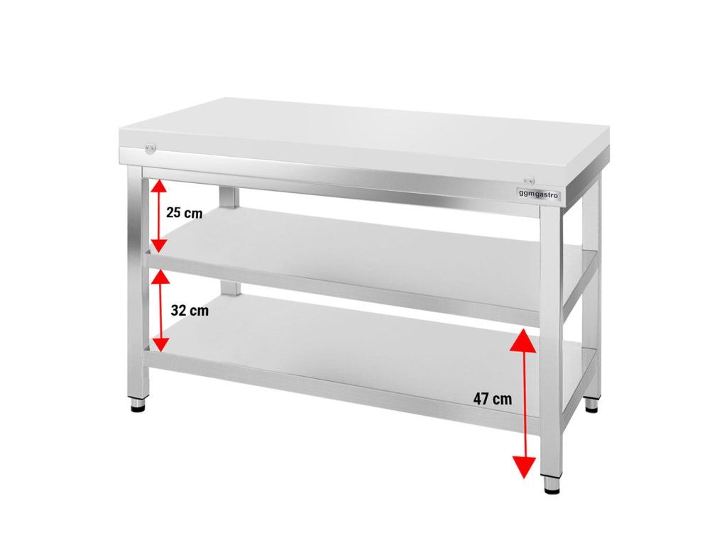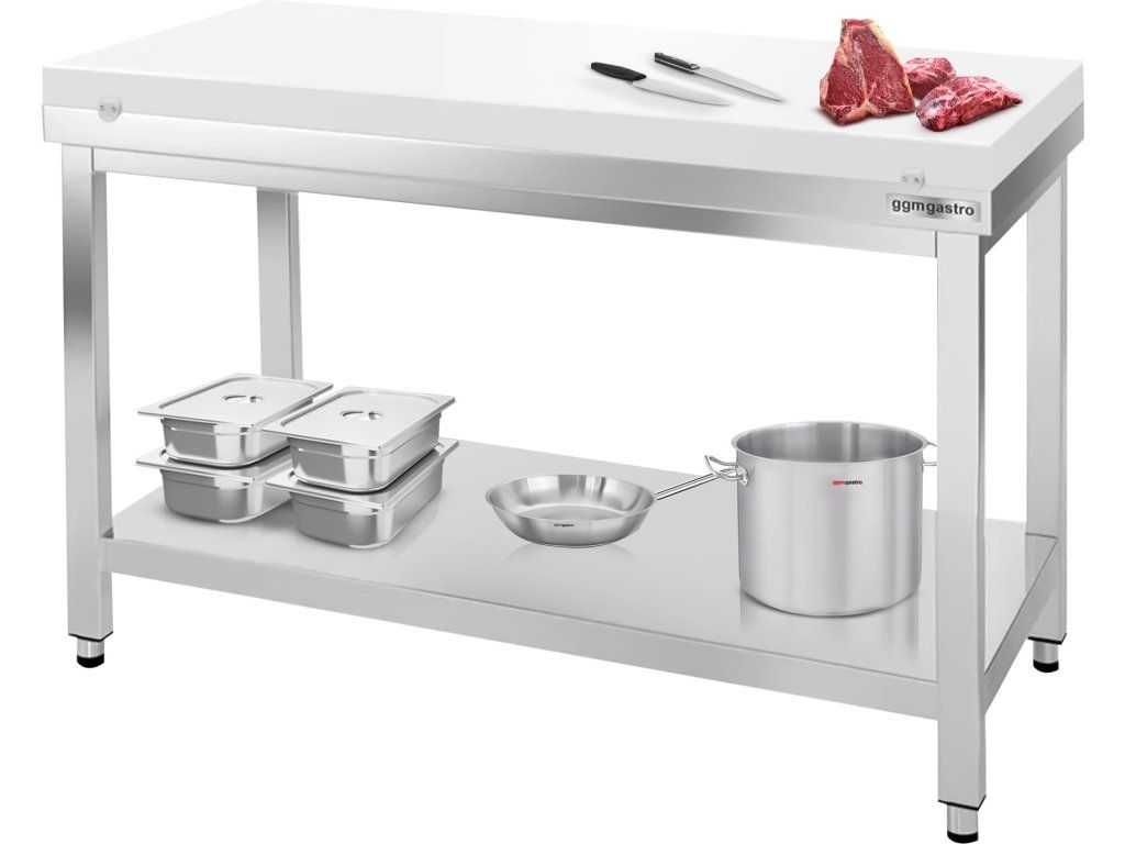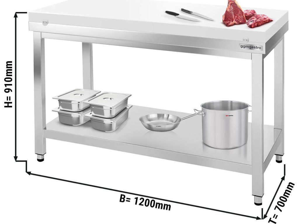 Stół roboczy ze stali nierdzewnej PREMIUM - 1200x700mm - z półką dolną bez panelu tylnego, włącznie z płytą do cięcia