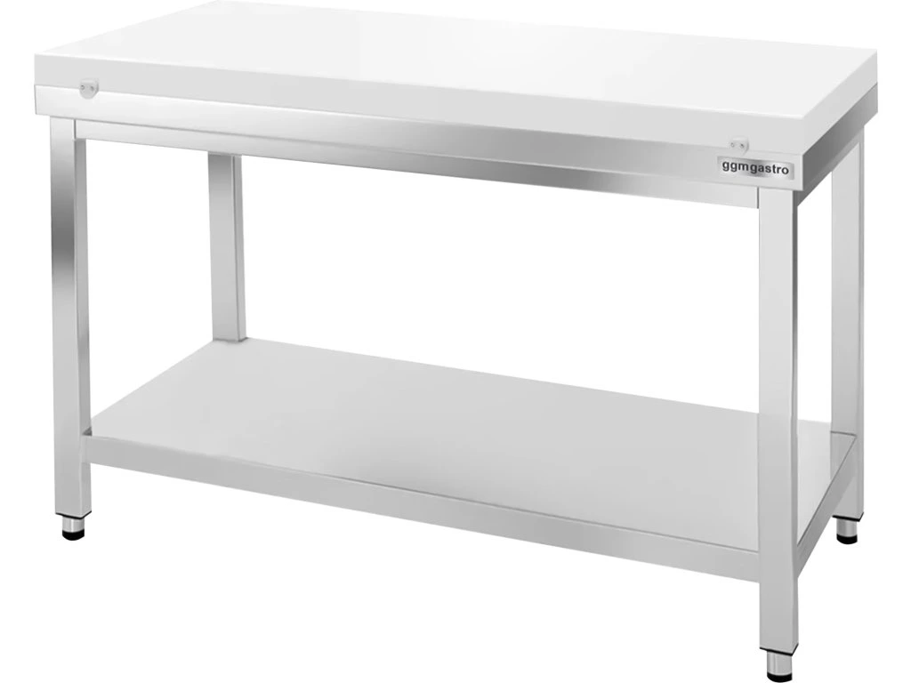 Stół roboczy ze stali nierdzewnej PREMIUM - 1400x600 mm - z półką dolną bez panelu tylnego, włącznie z płytą do cięcia