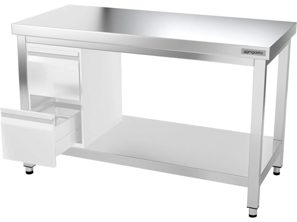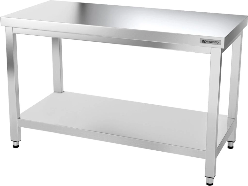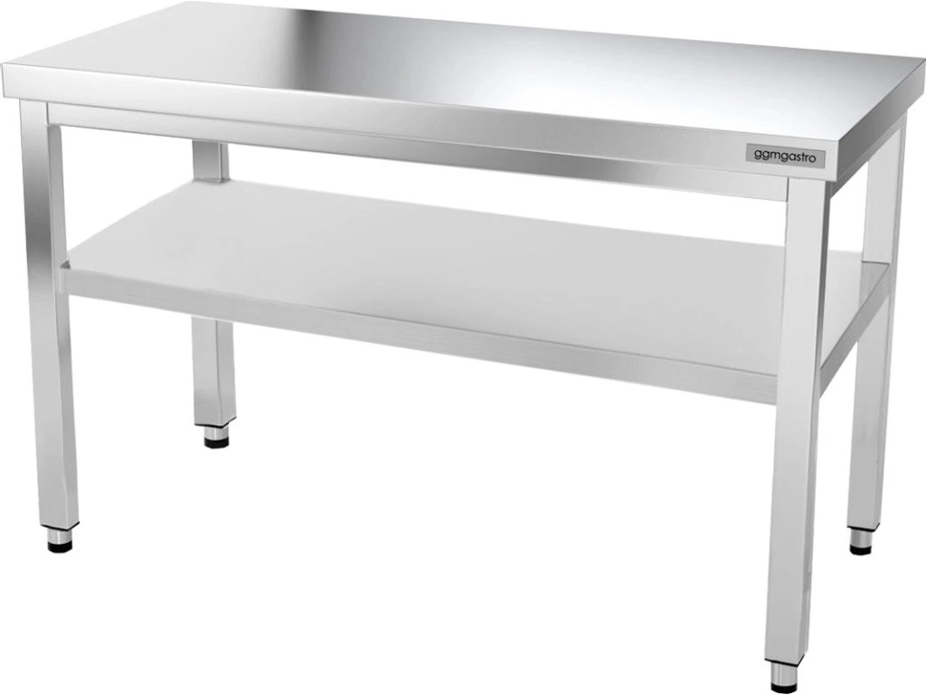 - Stół roboczy ze stali nierdzewnej z dolną półką i tylną krawędzią