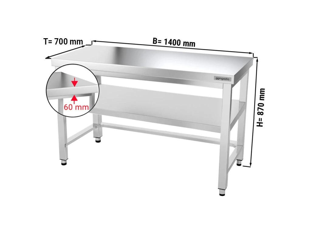 Stół roboczy PREMIUM ze stali nierdzewnej - 1400x700 mm - z dolną półką i wspornikami