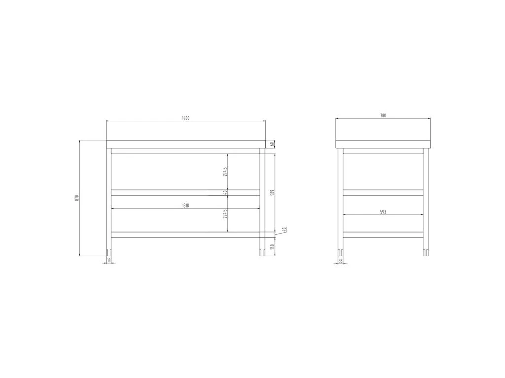 Stół roboczy PREMIUM ze stali nierdzewnej - 1400x700 mm - z półką dolną i półką pośrednią