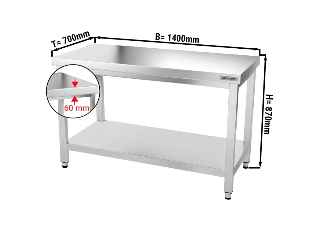 Stół roboczy PREMIUM ze stali nierdzewnej - 1400x700mm - z półką dolną bez panelu tylnego