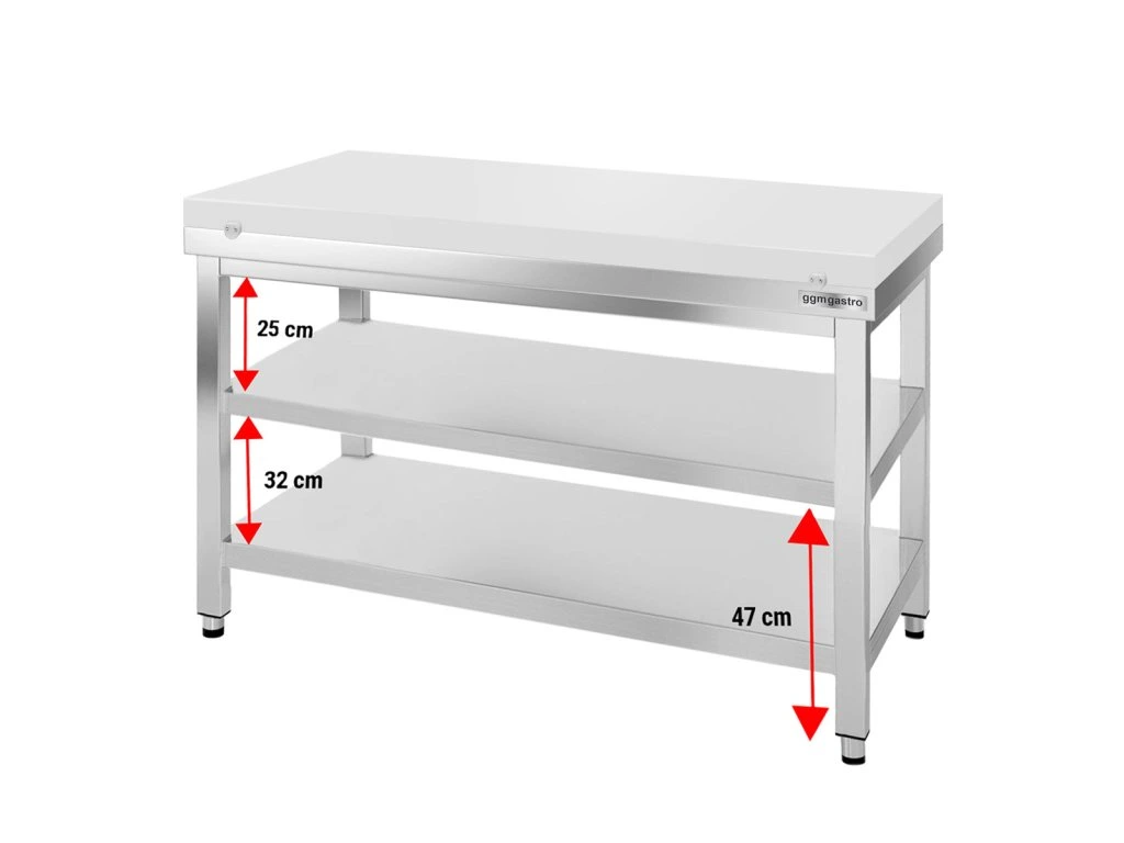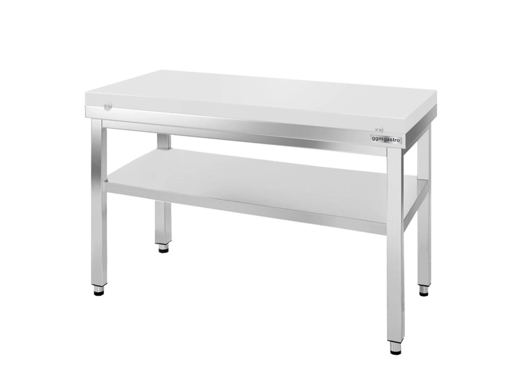 Stół roboczy ze stali nierdzewnej PREMIUM - 1400x800mm - z półką dolną bez panelu tylnego, włącznie z płytą do cięcia
