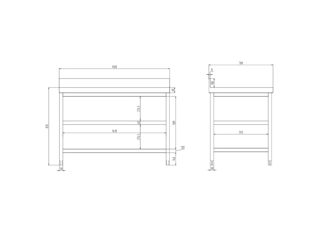- Płyta robocza z dwoma ściankami ze stali nierdzewnej