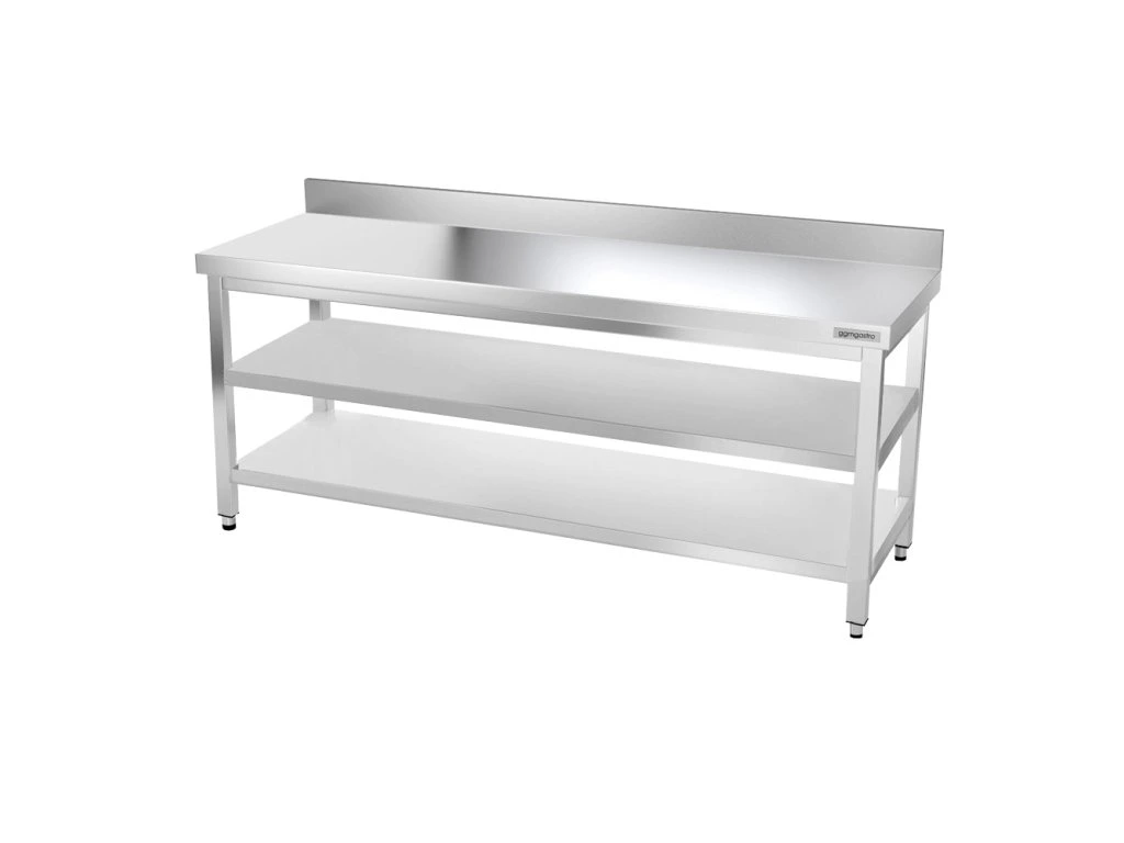 Stół roboczy PREMIUM ze stali nierdzewnej - 1600x600 mm - z półką dolną, panelem tylnym i półką pośrednią