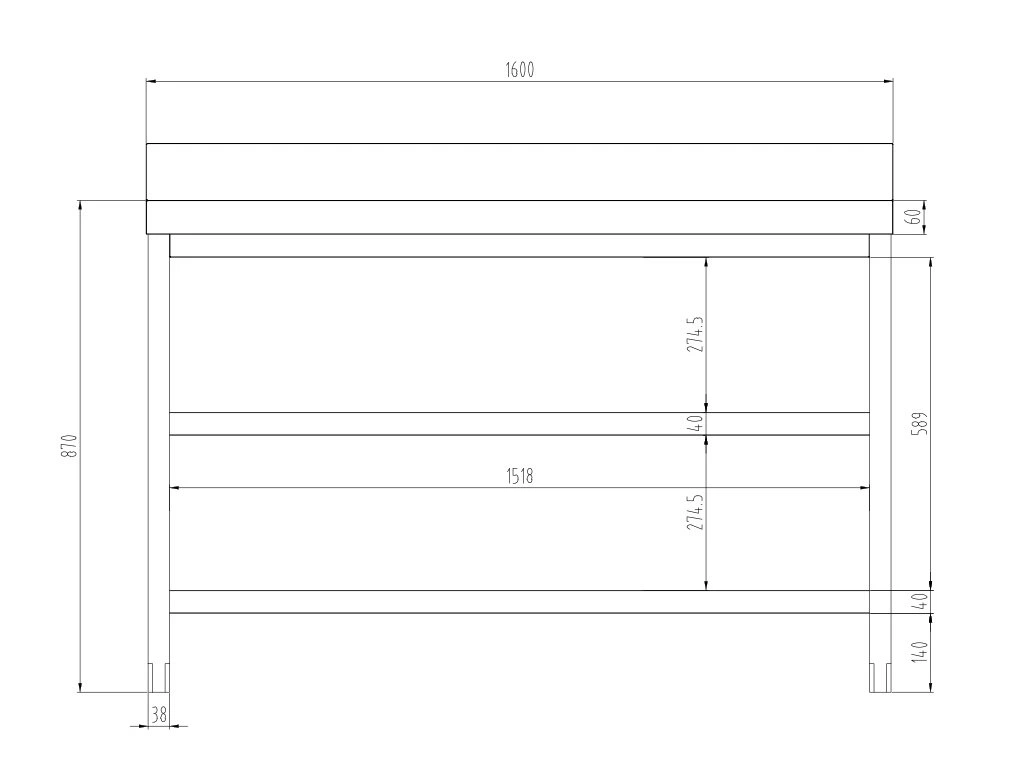 - Wymiary zewnętrzne szer. x gł. x wys: 1.600 mm x 600 mm x 970 mm