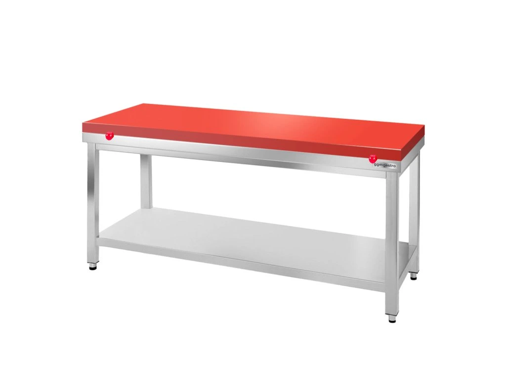Stół roboczy ze stali nierdzewnej PREMIUM - 1800x600 mm - z półką dolną bez panelu tylnego, włącznie z płytą do cięcia