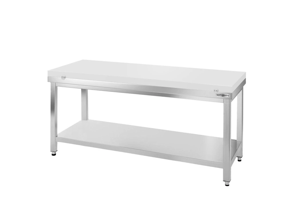 Stół roboczy ze stali nierdzewnej PREMIUM - 1800x600 mm - z półką dolną bez panelu tylnego, włącznie z płytą do cięcia