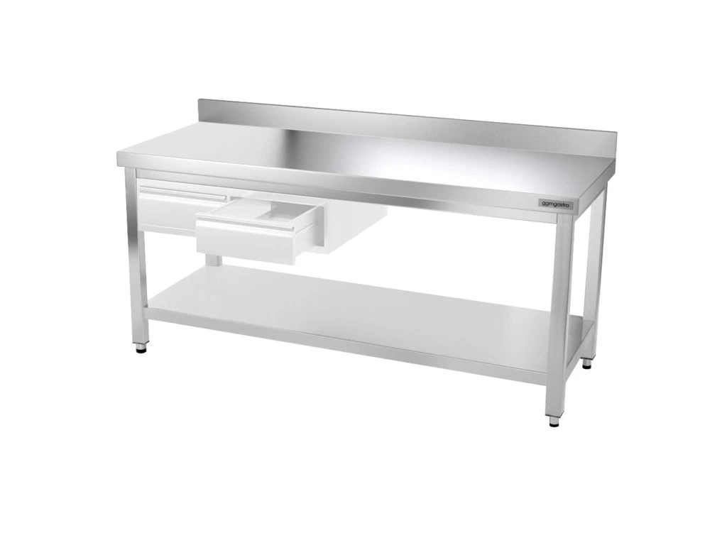 Stół roboczy PREMIUM ze stali nierdzewnej - 1800x700 mm - z podstawą, panelem tylnym & wspornikiem