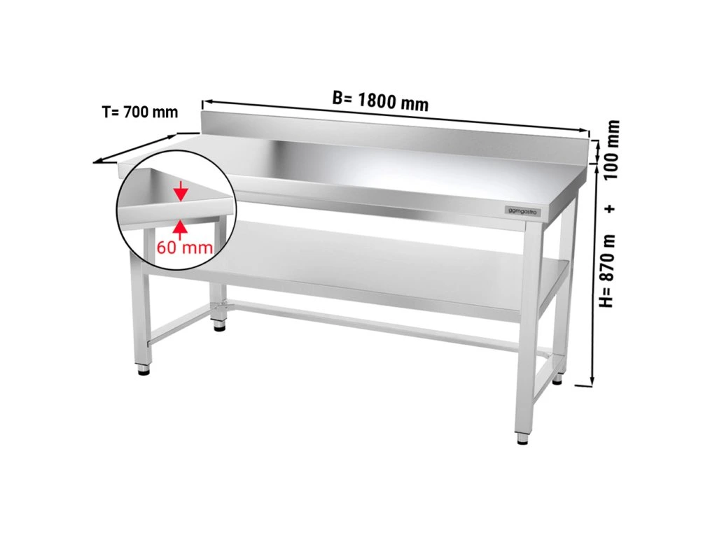 - Blat roboczy z dwoma ściankami ze stali nierdzewnej