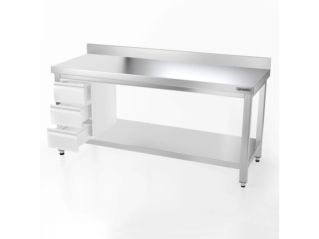 - Płyta robocza z dwoma ściankami ze stali nierdzewnej