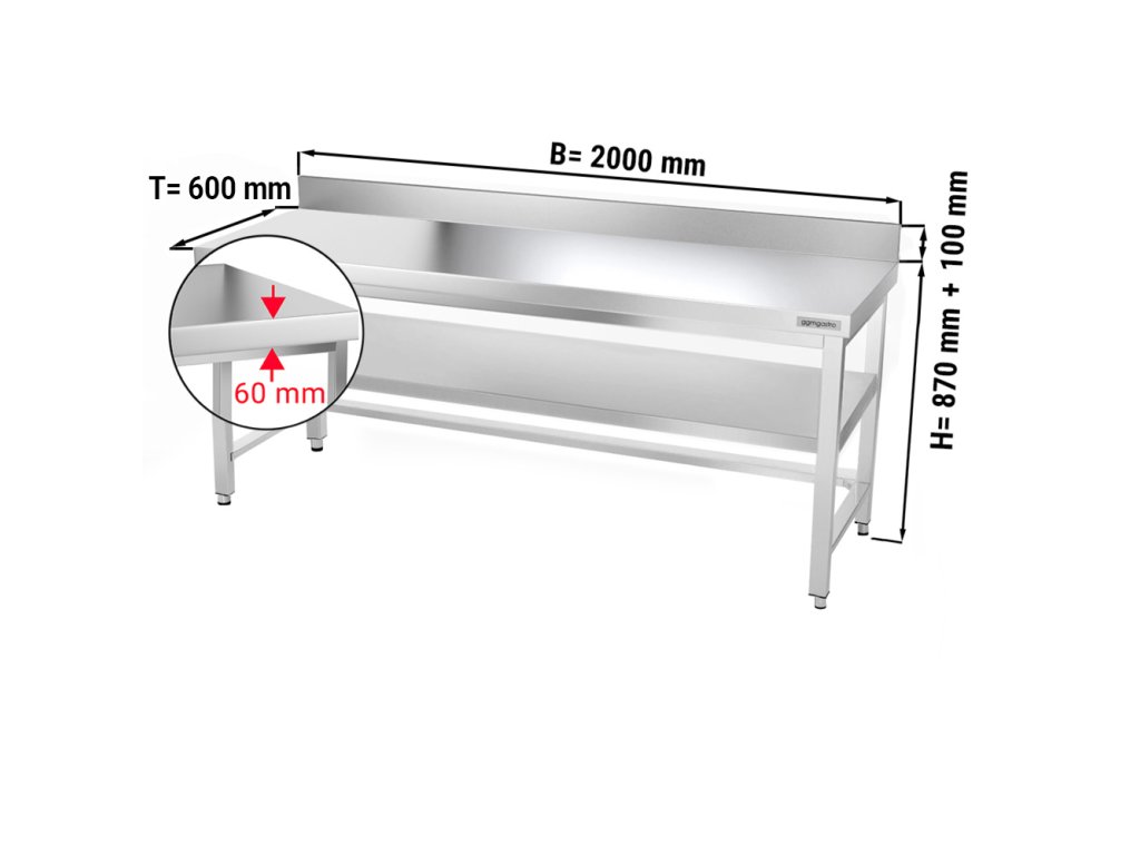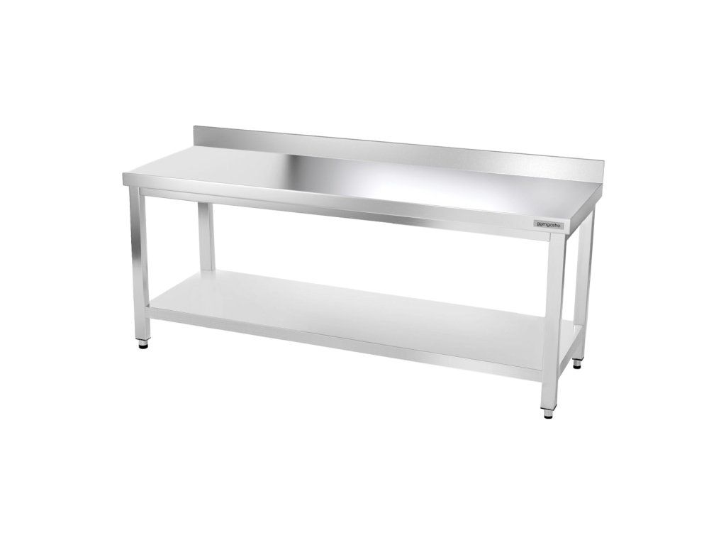 Stół roboczy PREMIUM ze stali nierdzewnej - 2000x600 mm - z podstawą, panelem tylnym & wspornikiem