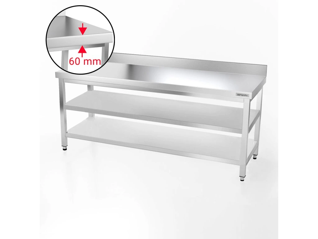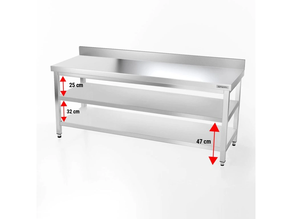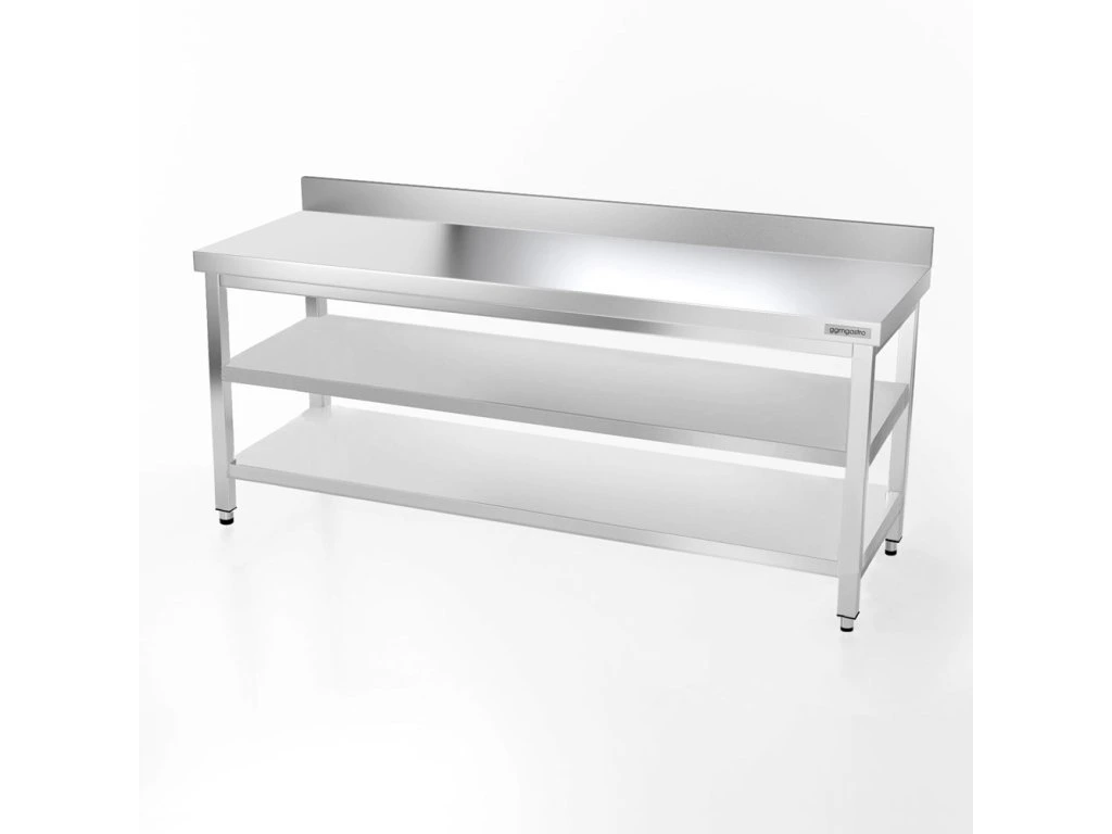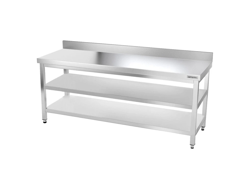 Stół roboczy PREMIUM ze stali nierdzewnej - 2000x700 mm - z półką dolną, panelem tylnym i półką pośrednią