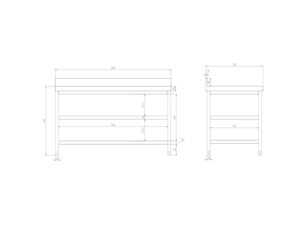 - Płyta robocza z dwoma ściankami ze stali nierdzewnej