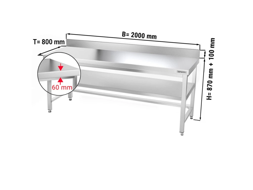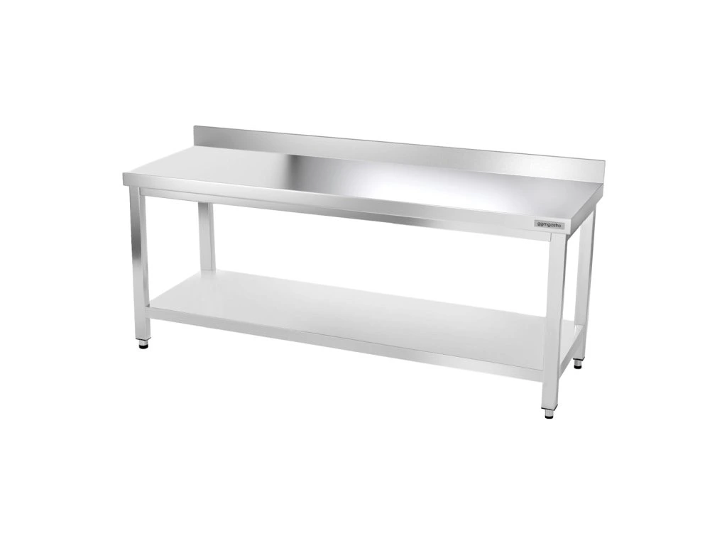 Stół roboczy PREMIUM ze stali nierdzewnej - 2000x800 mm - z podstawą, panelem tylnym & wspornikiem