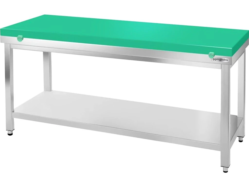 Stół roboczy ze stali nierdzewnej PREMIUM - 2000x800mm - z półką dolną bez panelu tylnego, włącznie z płytą do cięcia