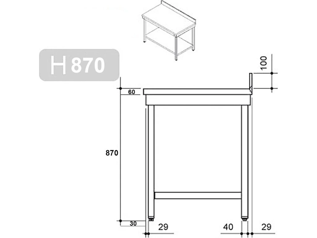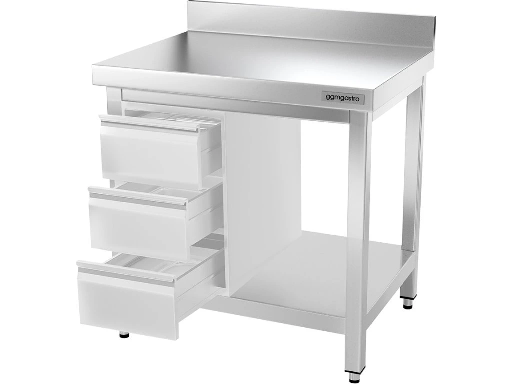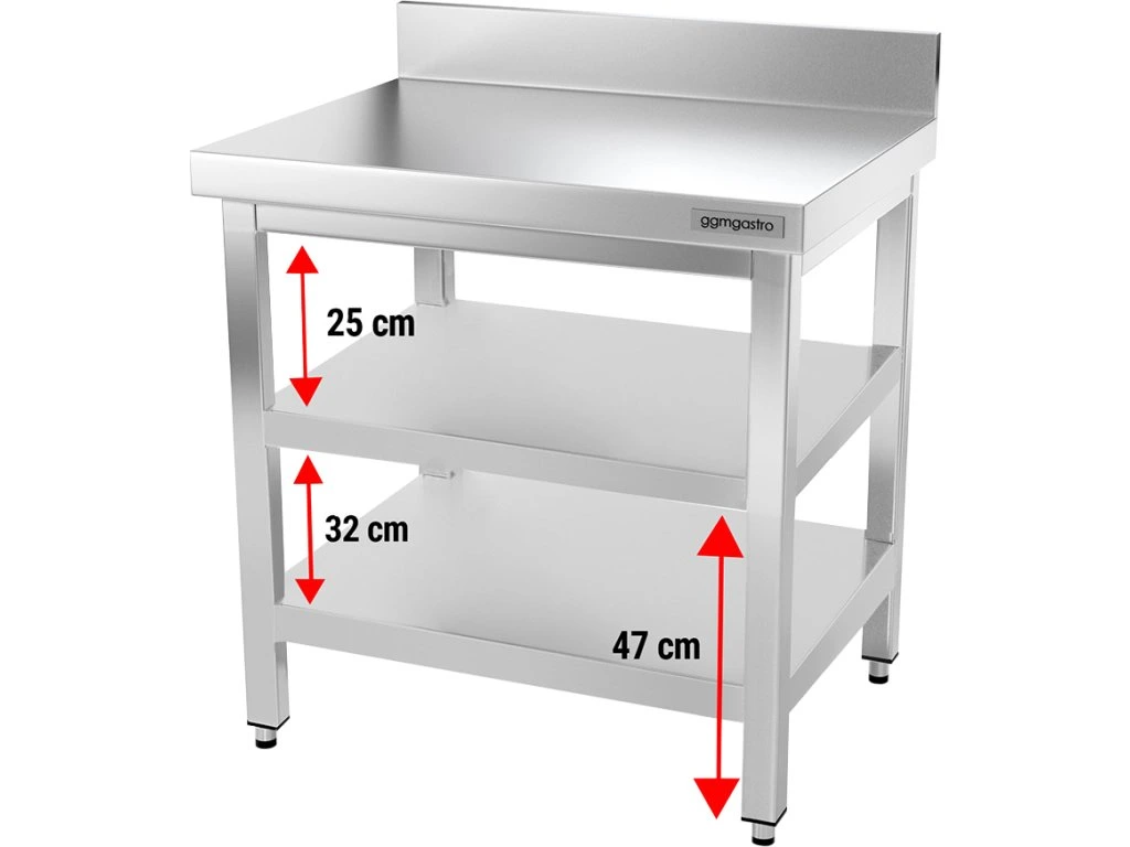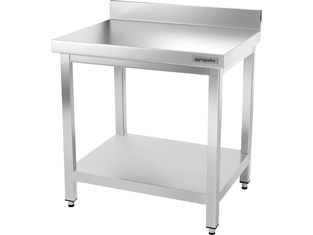 - Stół roboczy ze stali nierdzewnej z dolną półką i tylną krawędzią