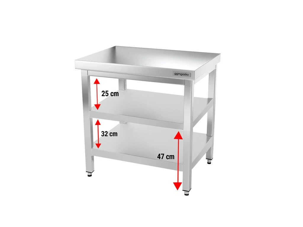 Stół roboczy PREMIUM ze stali nierdzewnej - 600x700 mm - z półką dolną i półką pośrednią