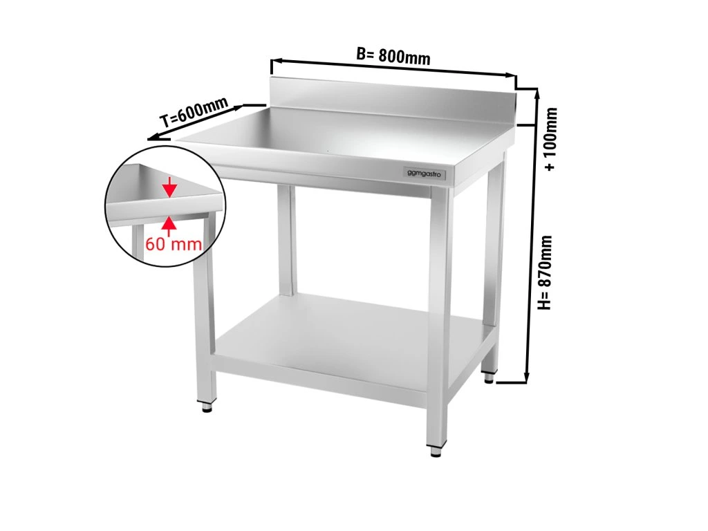 Stół roboczy PREMIUM ze stali nierdzewnej - 800x600mm - z półką dolną i panelem tylnym
