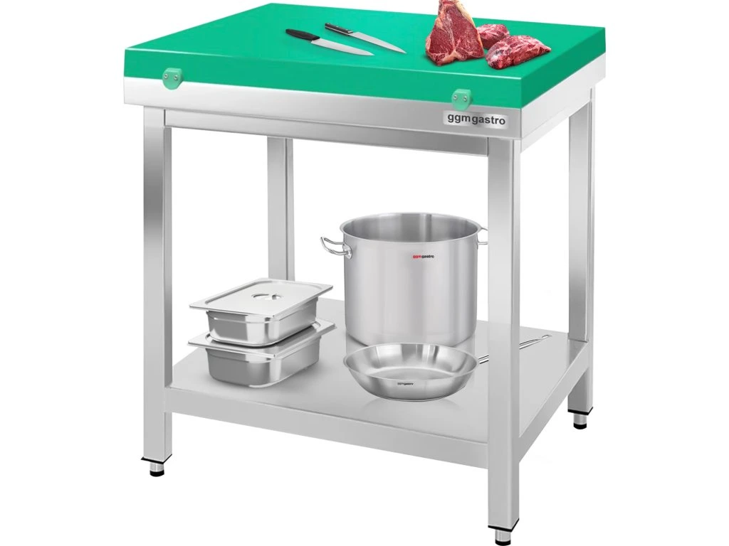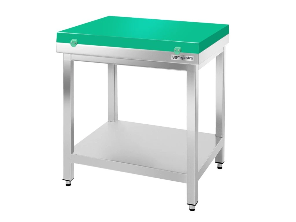 Stół roboczy ze stali nierdzewnej PREMIUM - 700x600 mm - z półką dolną bez panelu tylnego włącznie z płytą do cięcia