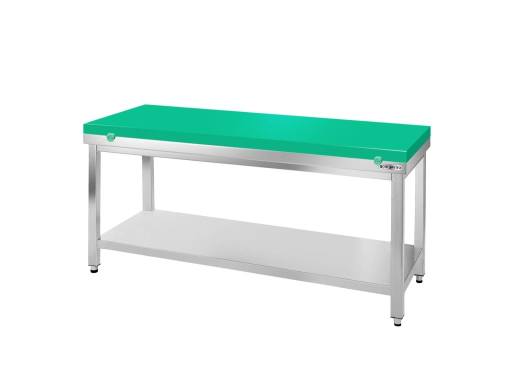 Stół roboczy ze stali nierdzewnej PREMIUM - 1500x600 mm - z półką dolną bez panelu tylnego włącznie z płytą do cięcia
