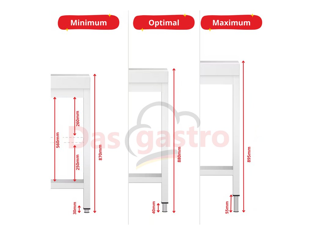 - Regulowana wysokość nóg zapewnia optymalne dopasowanie do miejsca pracy