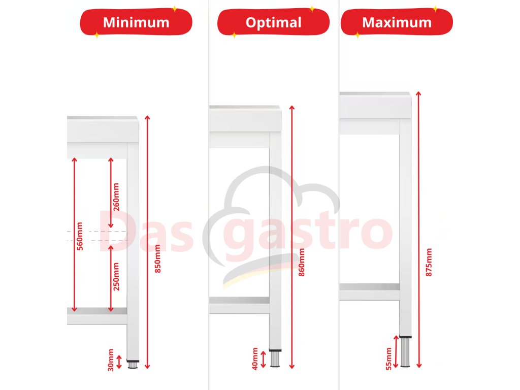 · Nóżki z regulacją wysokości od 30 mm do 55 mm