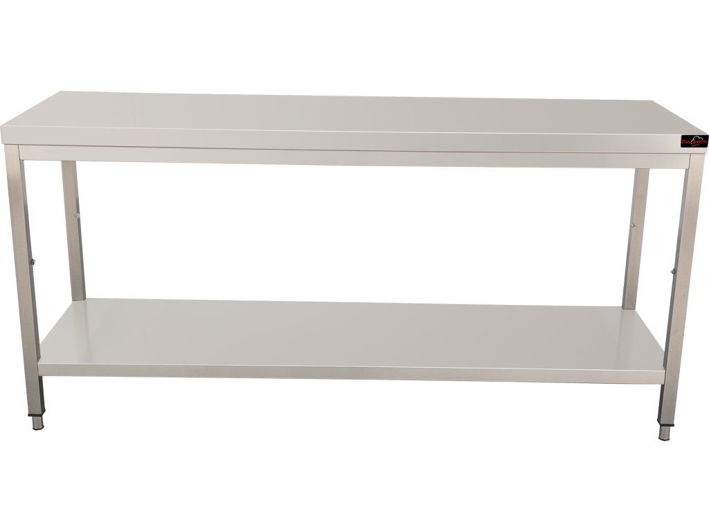 Stół warsztatowy ze stali nierdzewnej do profesjonalnych zastosowań. Stabilna konstrukcja, łatwa konserwacja i praktyczna dolna półka sprawiają, że jest to idealny wybór do kuchni gastronomicznych, pomieszczeń przygotowawczych i zaplecza biurowego.