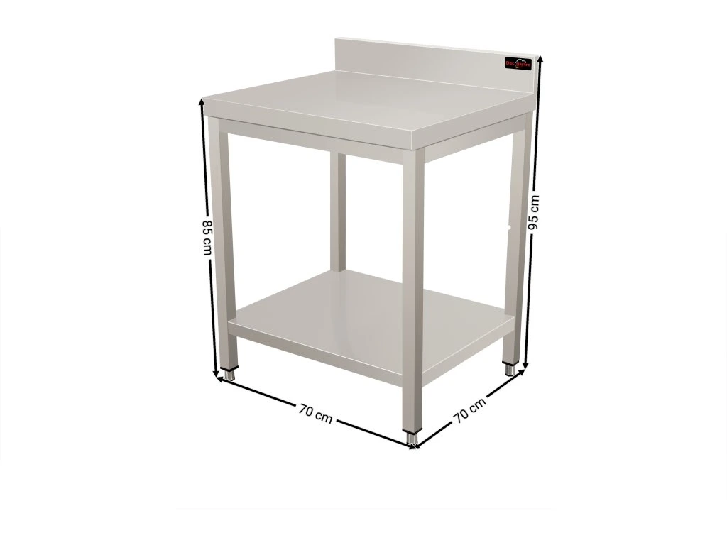 PREMIUM stół warsztatowy ze stali nierdzewnej z dolną półką i tylną krawędzią 0,7 m