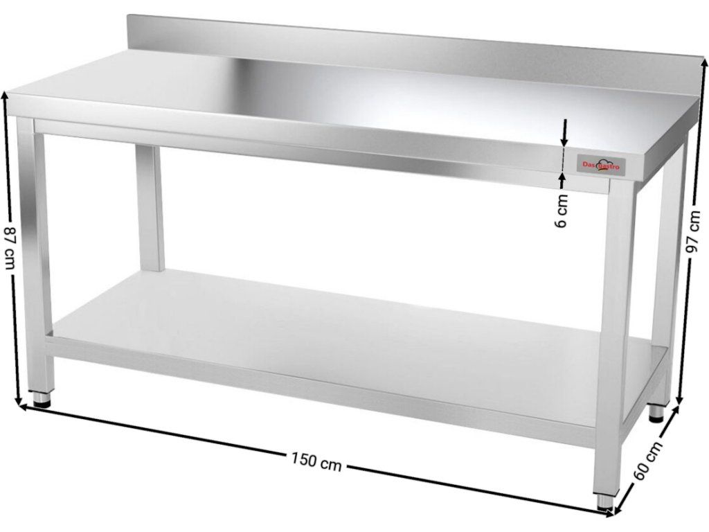 PREMIUM stół warsztatowy ze stali nierdzewnej z dolną półką i tylną krawędzią 1,5 m