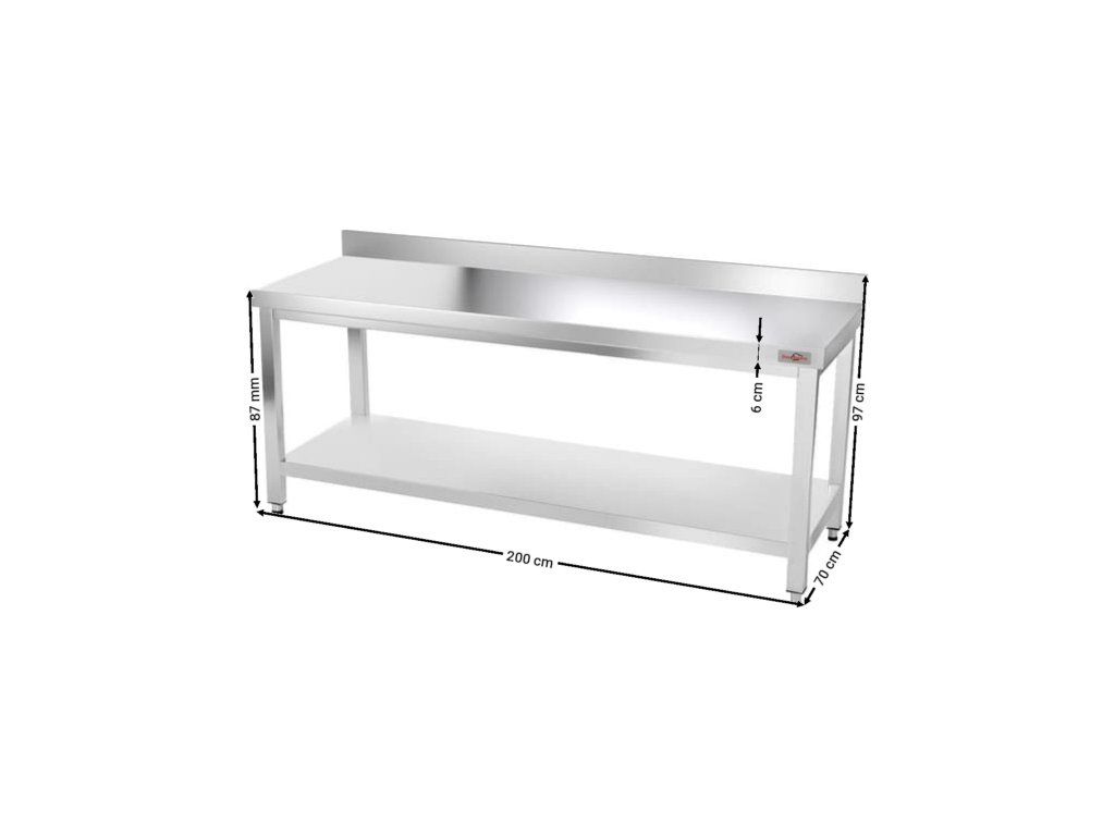 PREMIUM stół warsztatowy ze stali nierdzewnej z dolną półką i tylną krawędzią 2,0 m