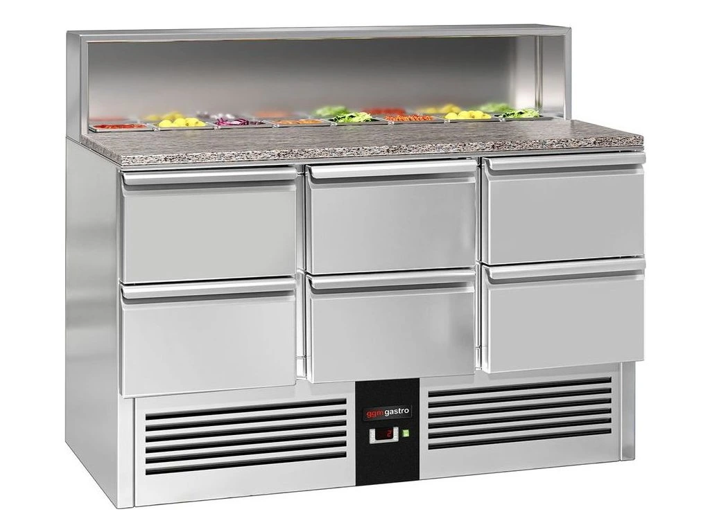 Stół Sałatkowy PREMIUM - 1368 mm - nadstawna ze stali nierdzewnej - 8x GN 1/6 - 6 szuflad