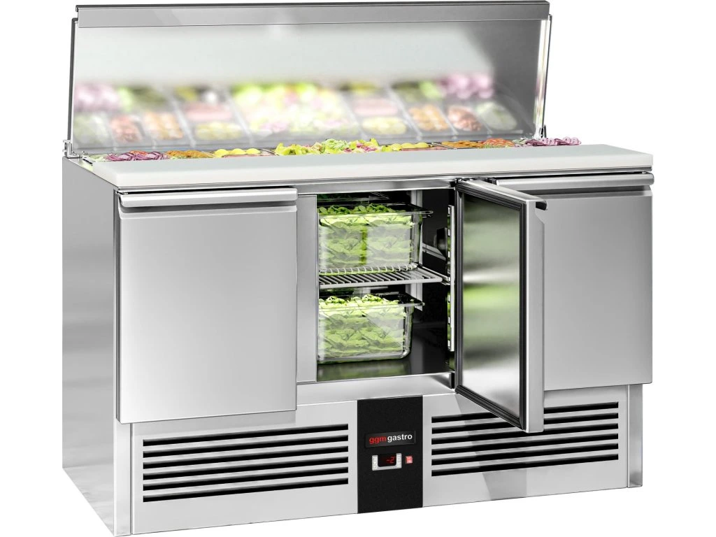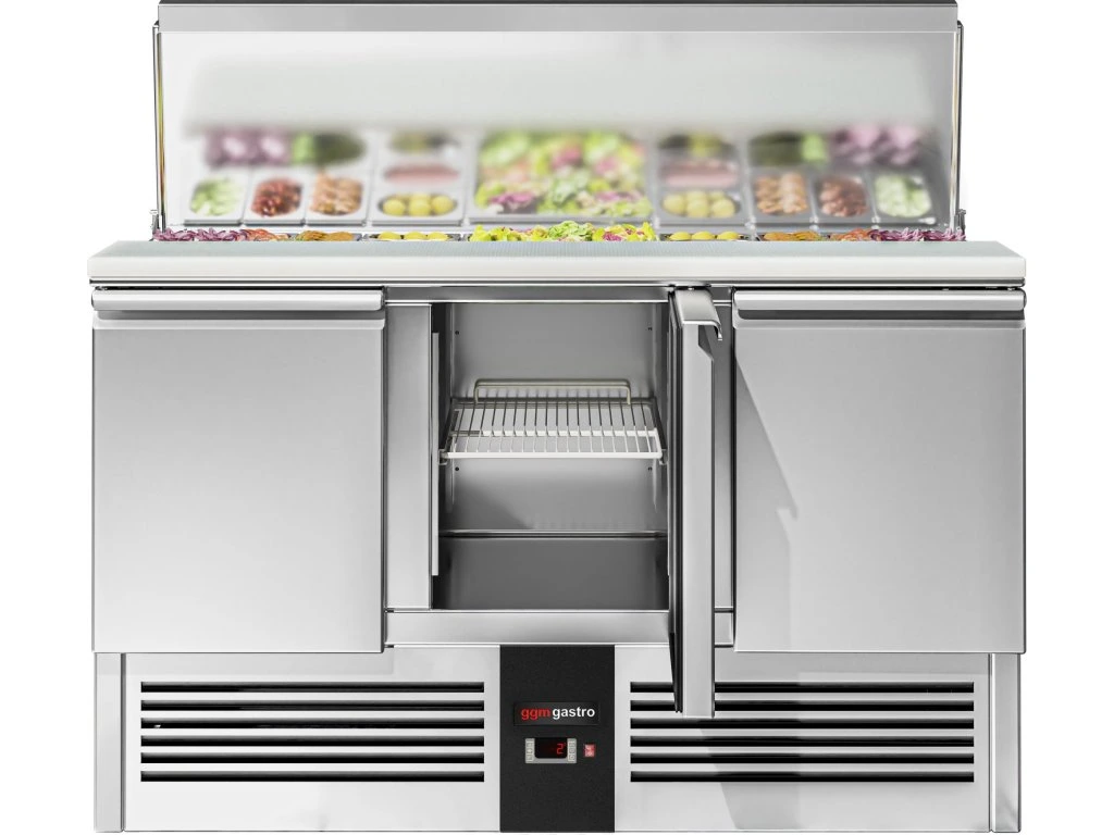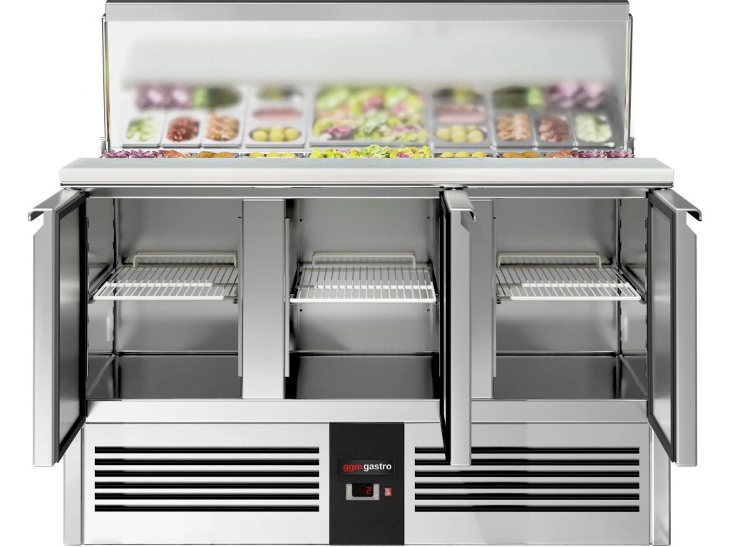 Stół Sałatkowy PREMIUM - 1368 mm - Wlot na pojemniki GN - 3 drzwi