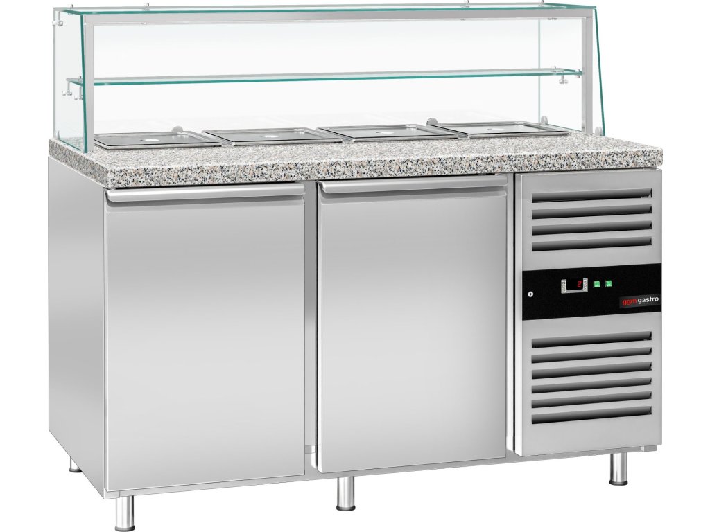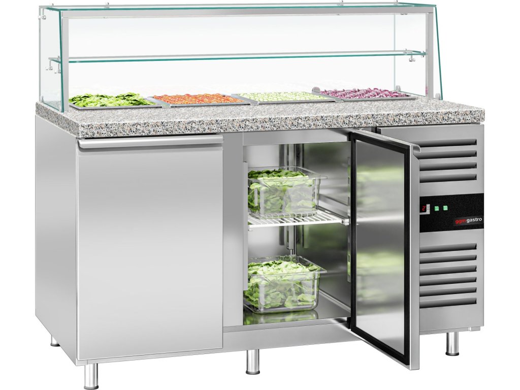 Stół Sałatkowy PREMIUM - 1515mm - 2 drzwi - dla 4x GN 1/1 - szklana nadstawna- 1 półka - oświetlenie LED