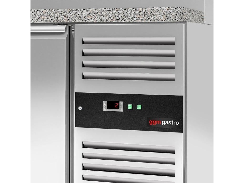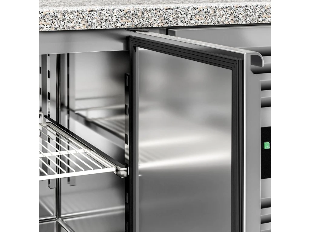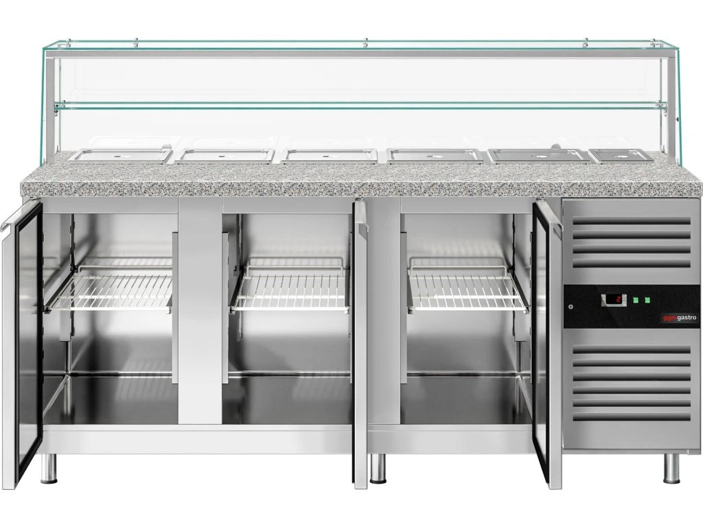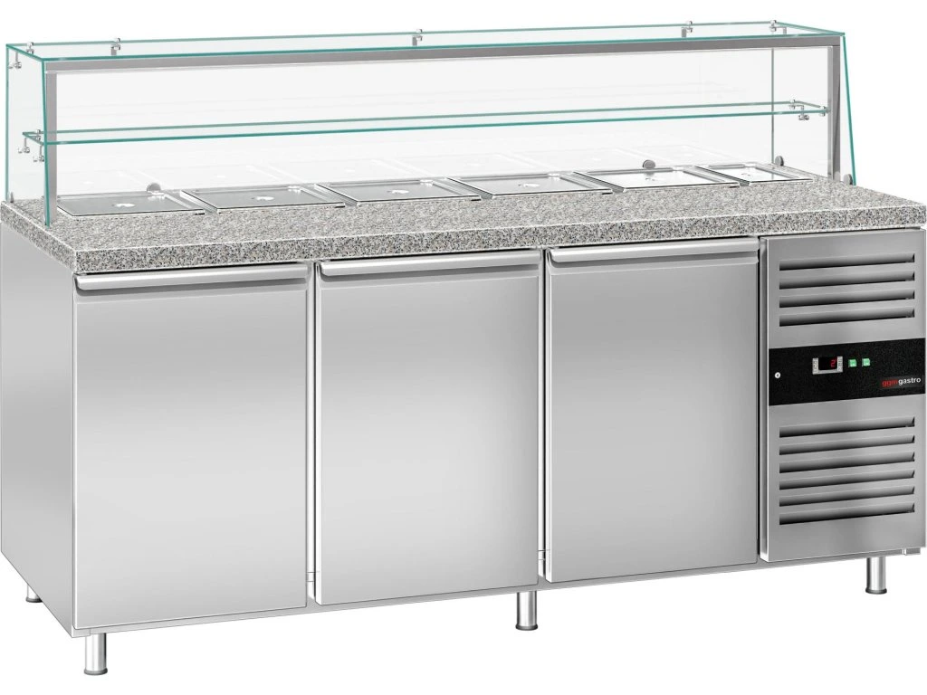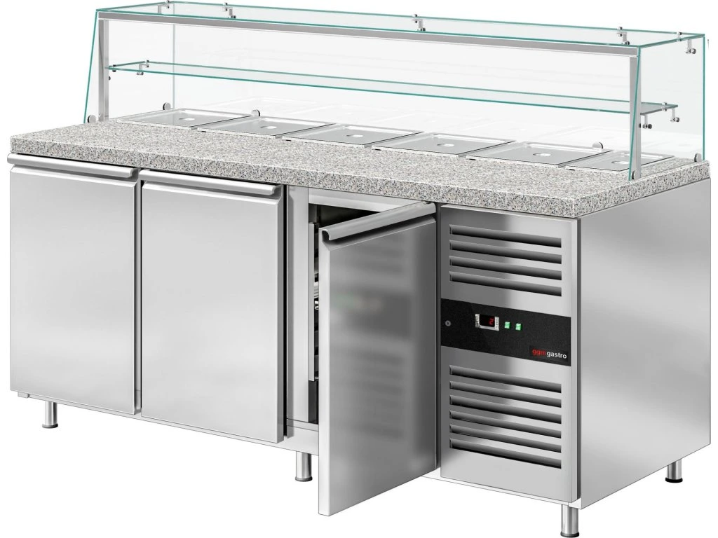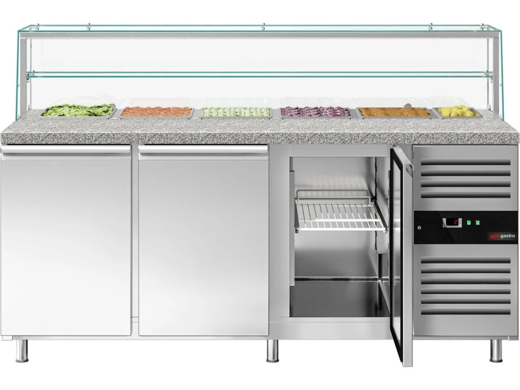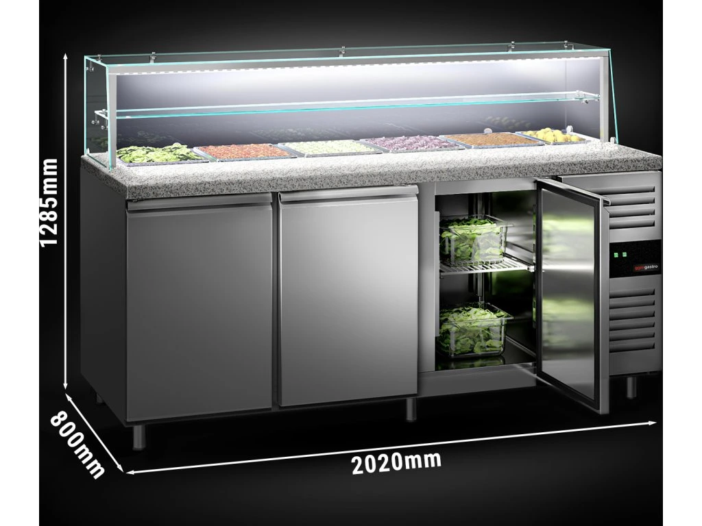 Stół Sałatkowy PREMIUM - 2020mm - 3 drzwi - dla 5x GN 1/1 + 1x GN 2/4 - szklana nadstawna - 1 półka - oświetlenie LED