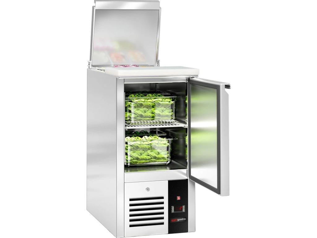 Stół Sałatkowy PREMIUM - 450 mm - Wlot na pojemniki GN - 1 drzwi