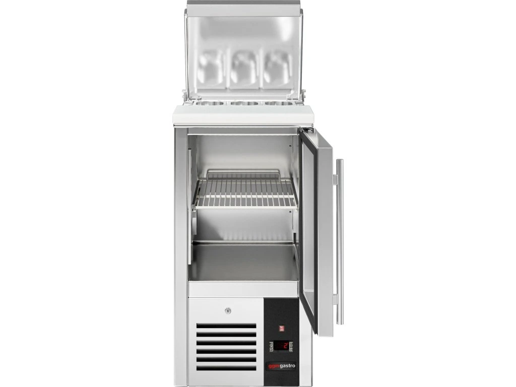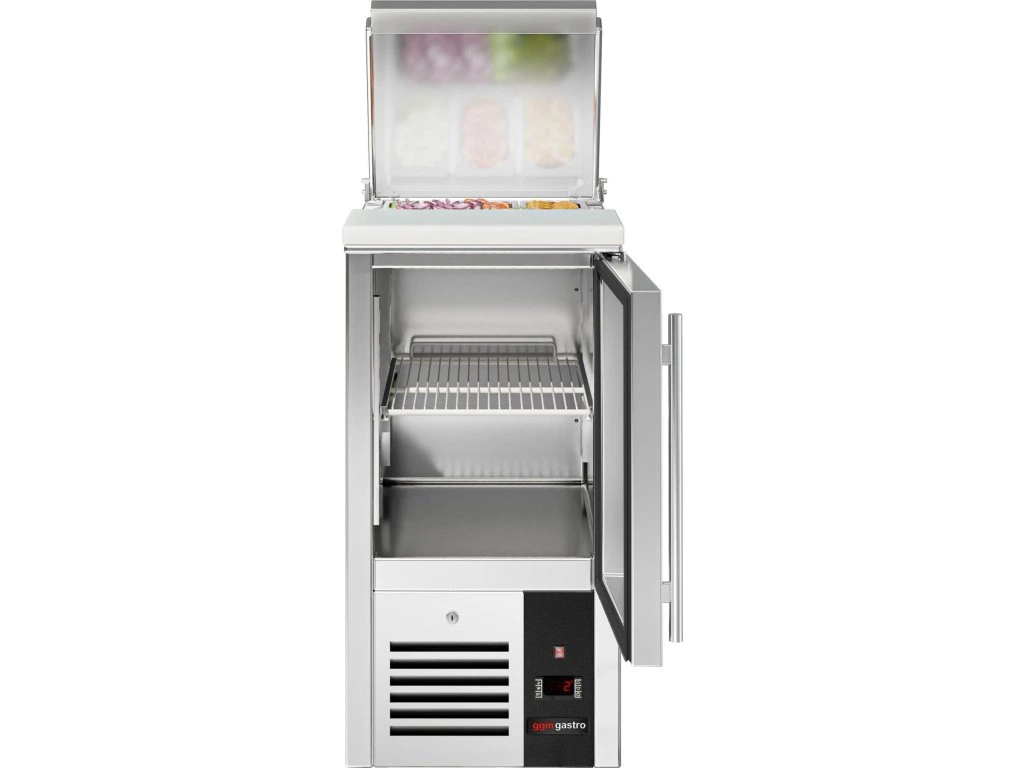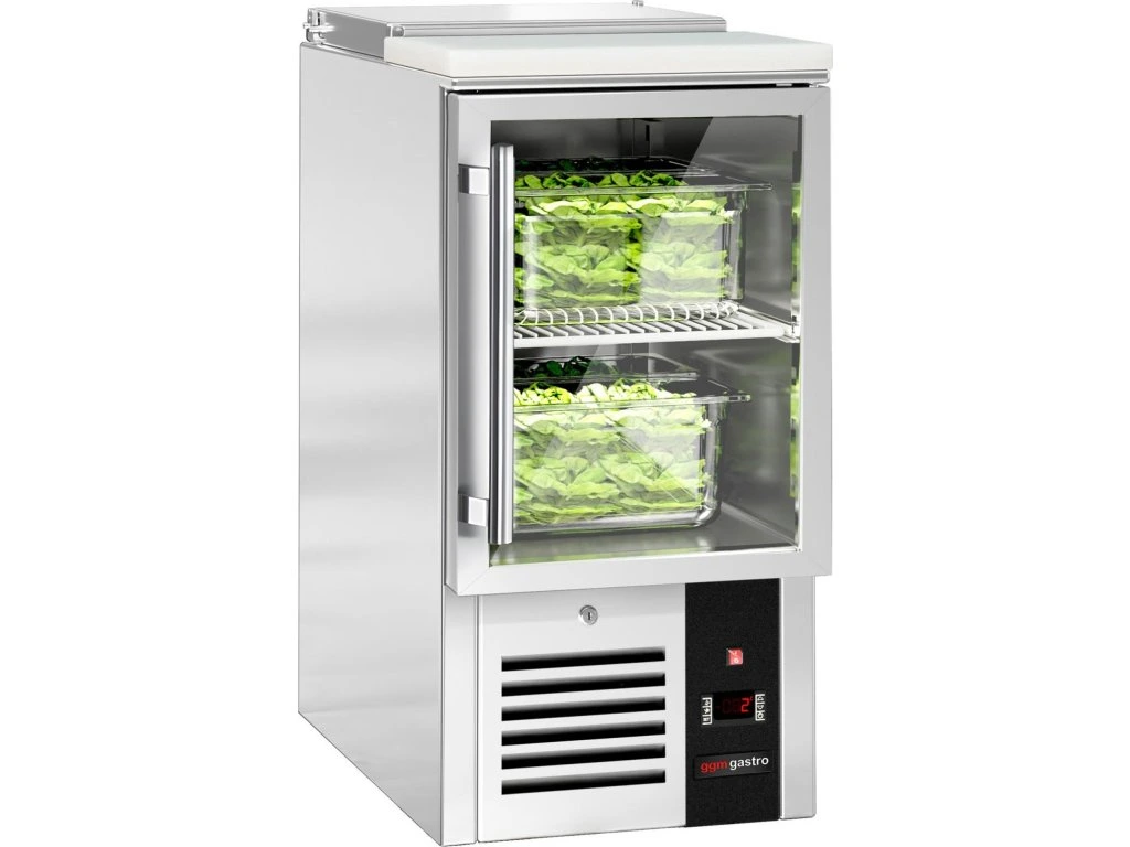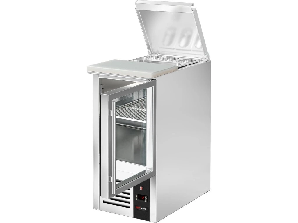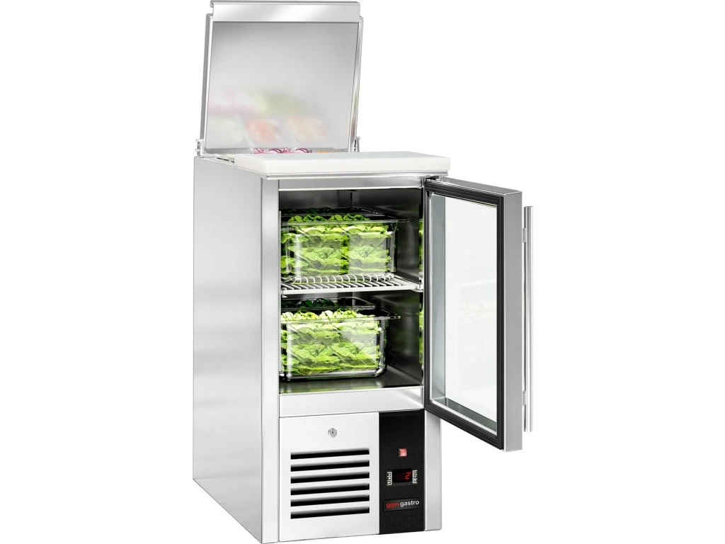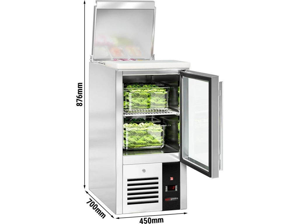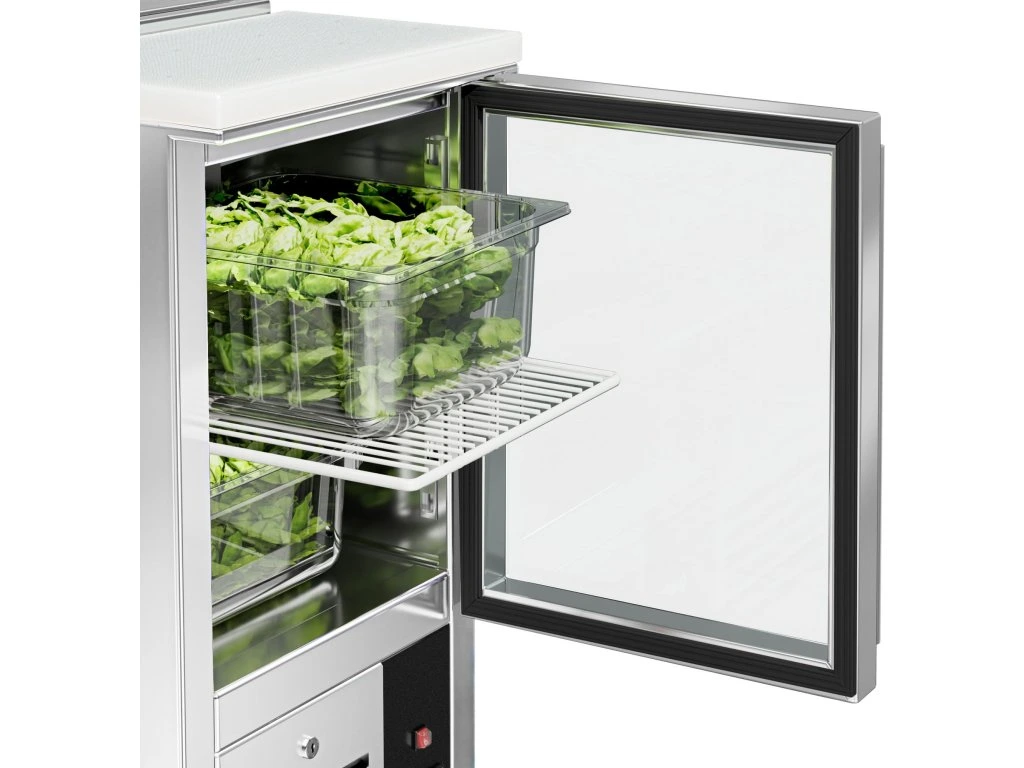 Stół Sałatkowy PREMIUM - 450 mm - Wlot na pojemniki GN - 1 szklane drzwi