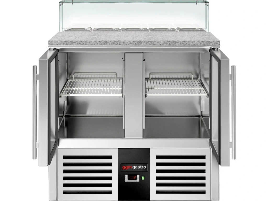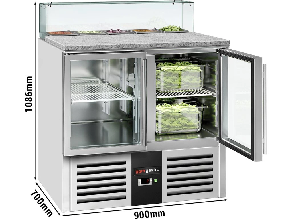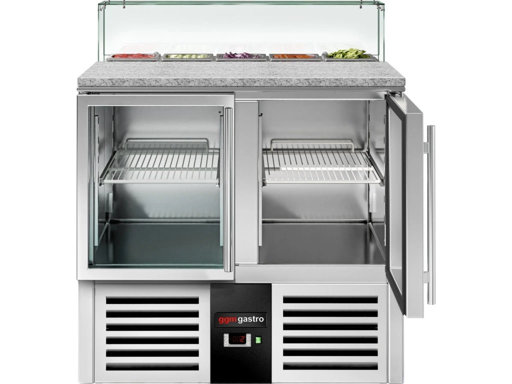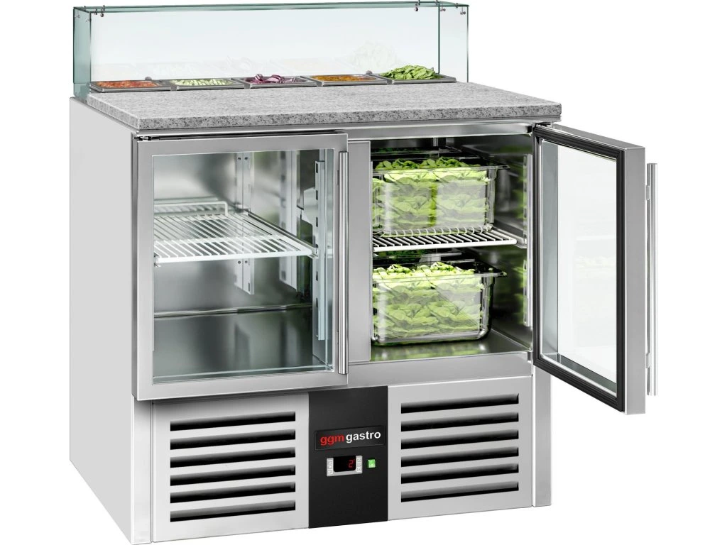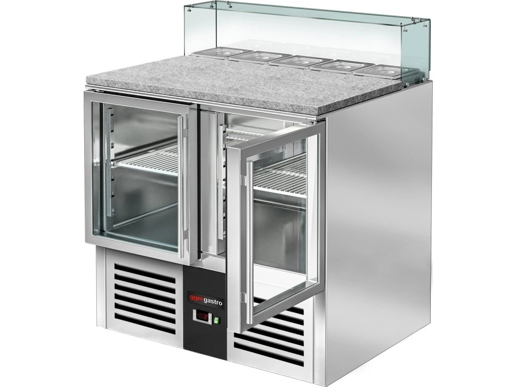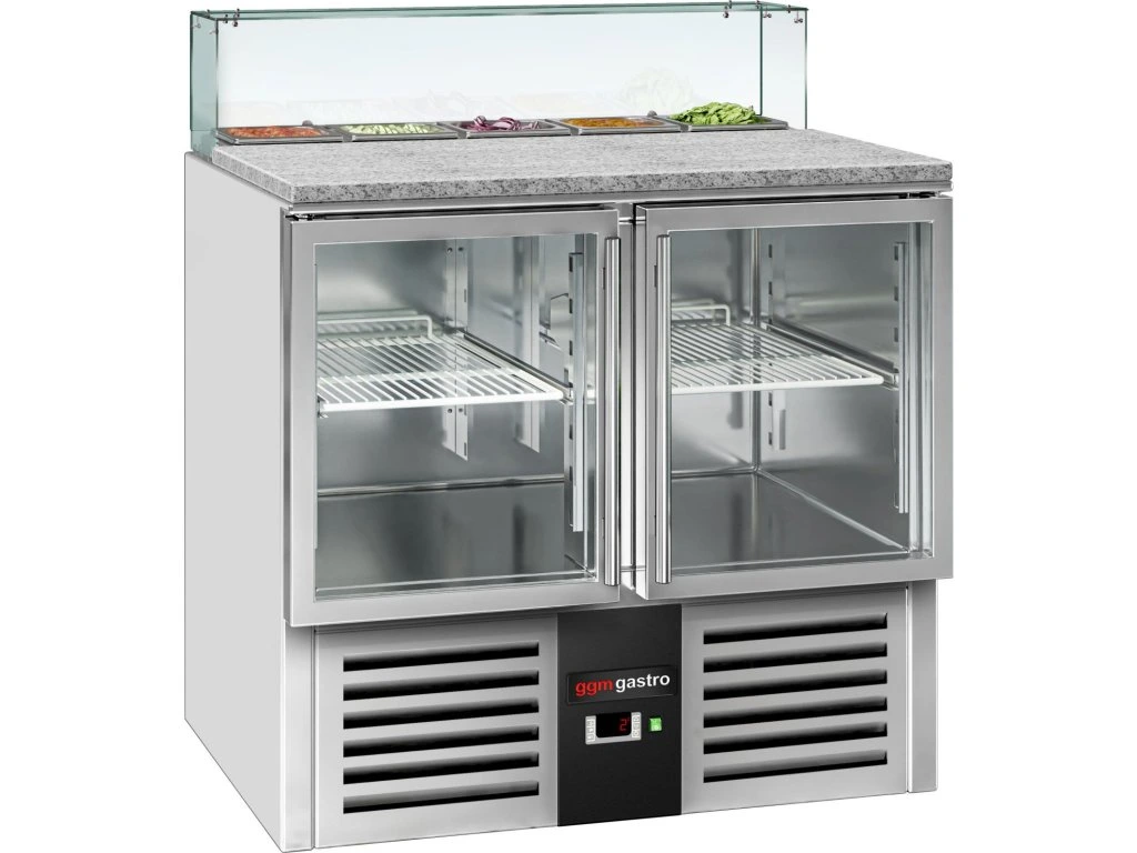 Stół Sałatkowy PREMIUM - 900mm - szklana nadstawna dla 5x GN 1/6 - 2 szklane drzwi