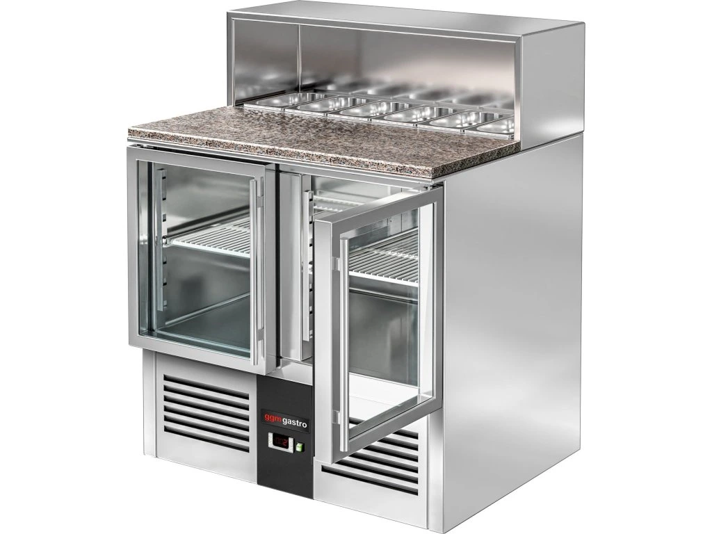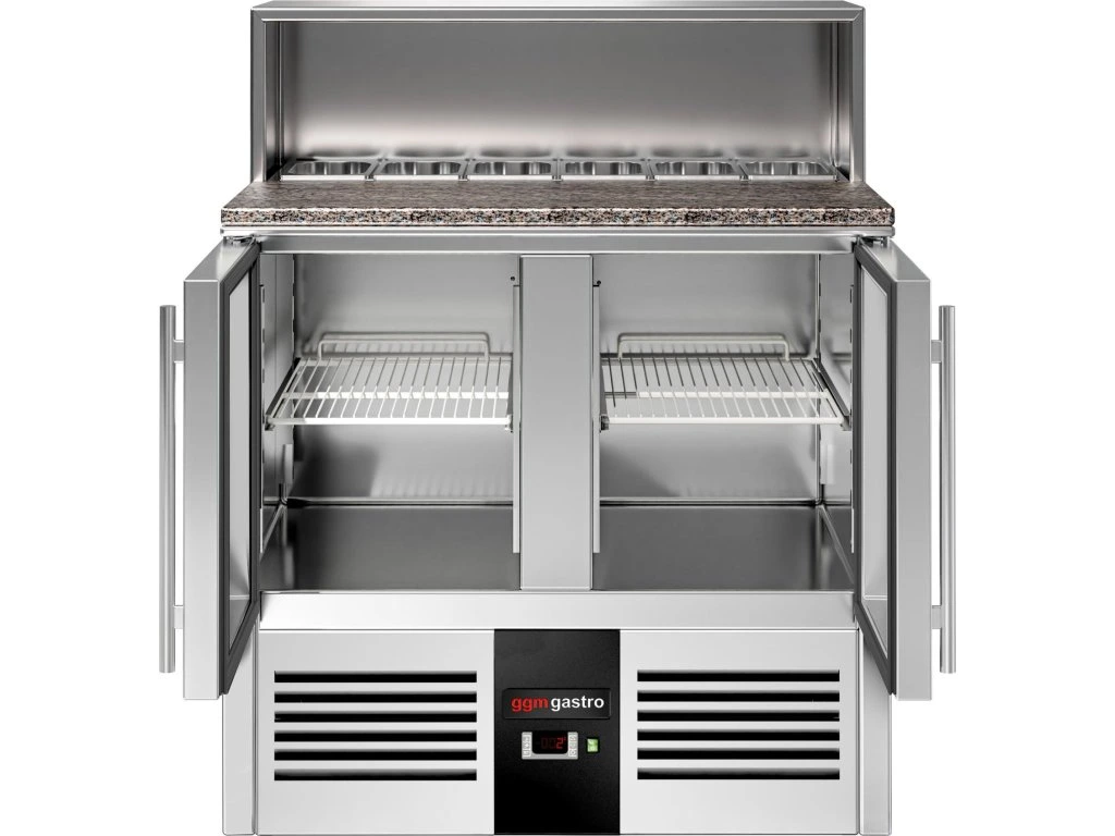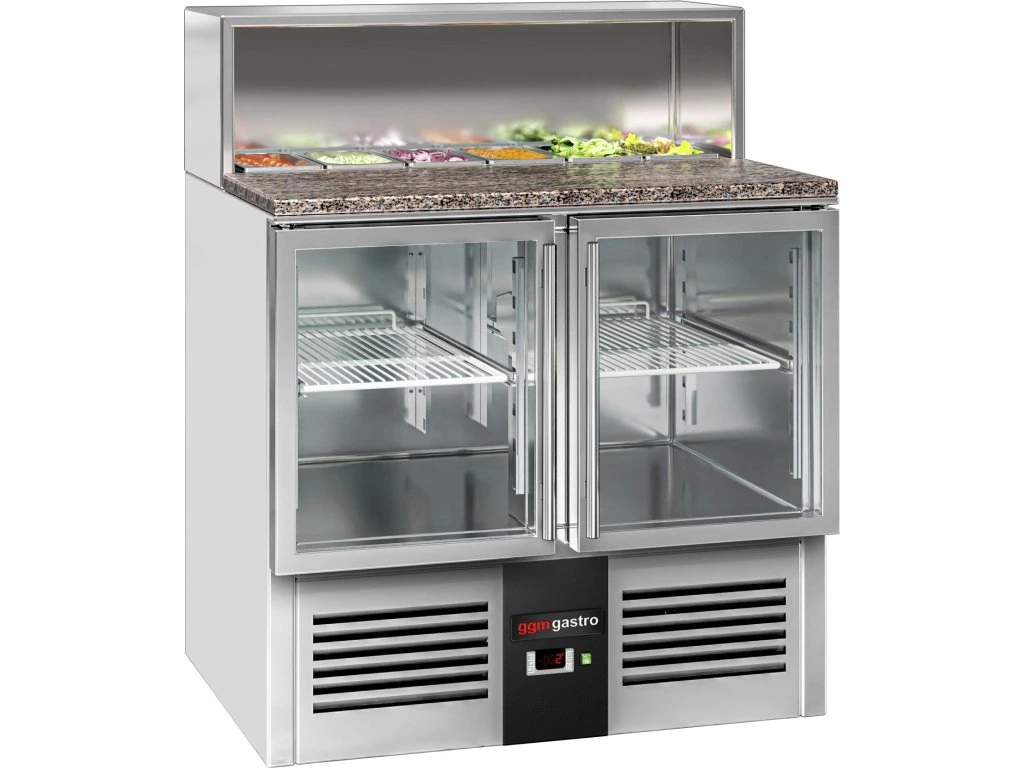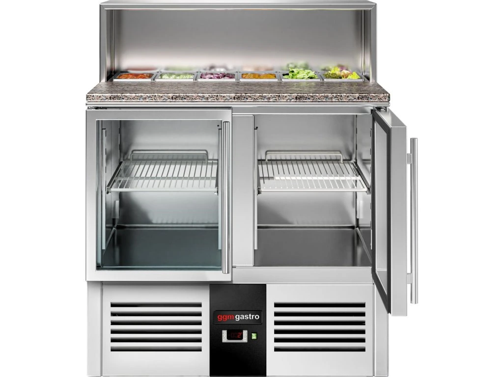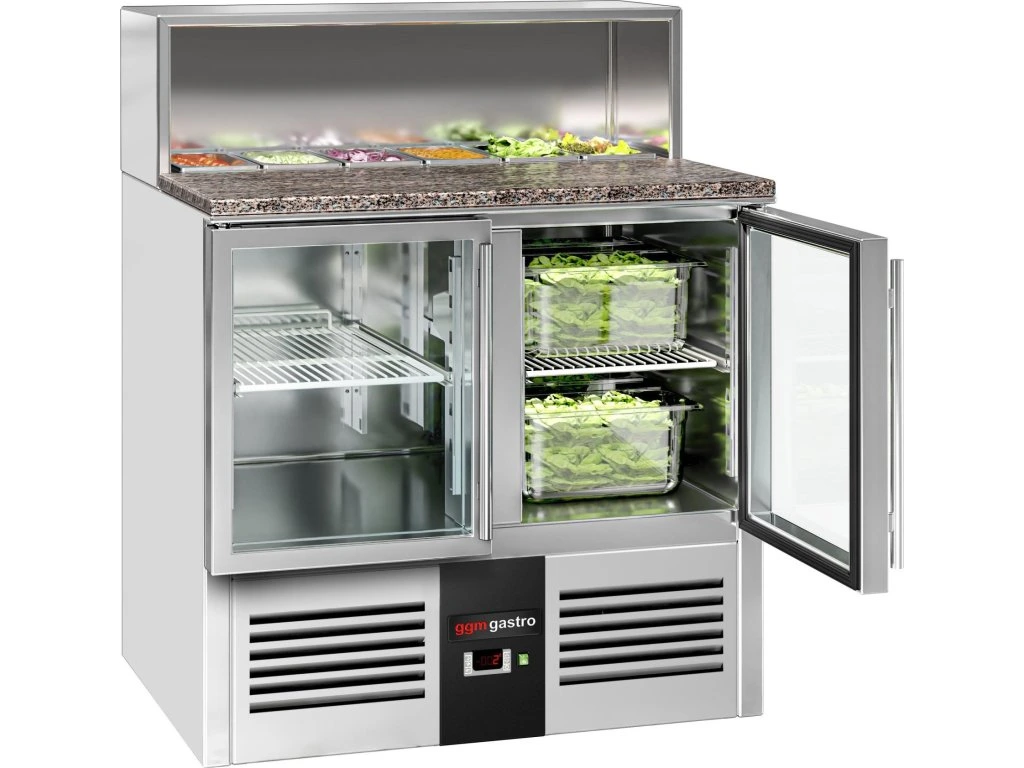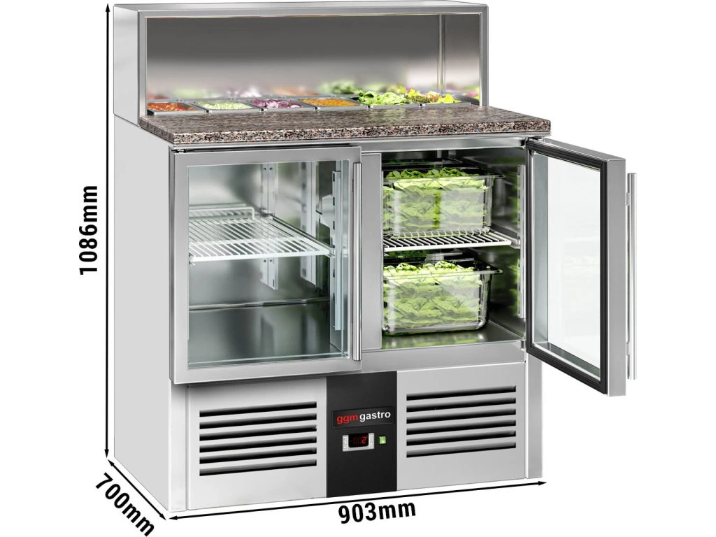 Stół Sałatkowy PREMIUM - 903 mm - nadstawna ze stali nierdzewnej - dla 5x GN 1/6 - 2 szklane drzwi