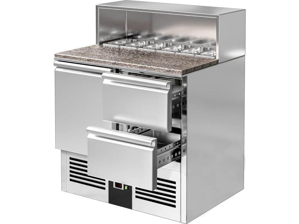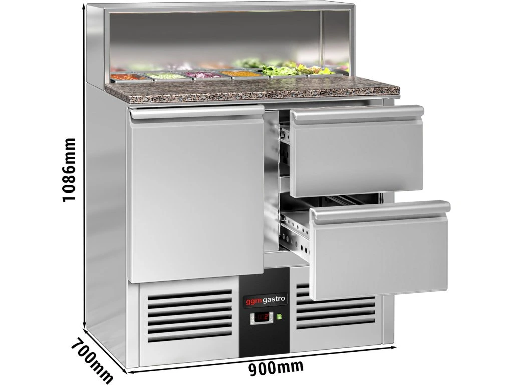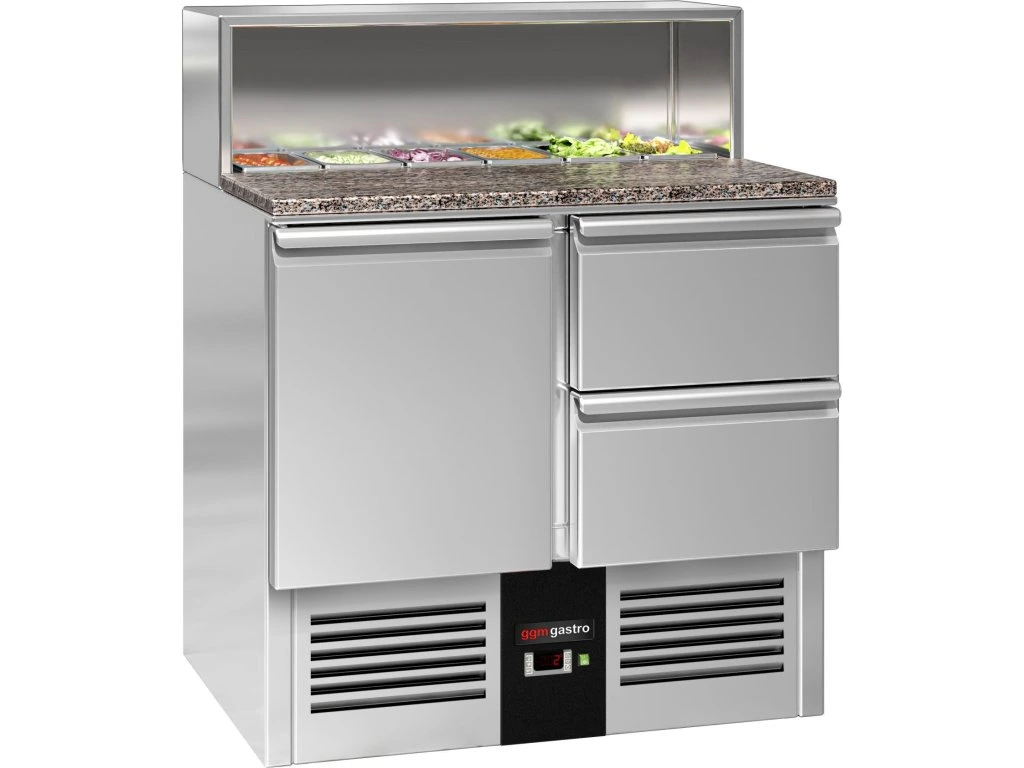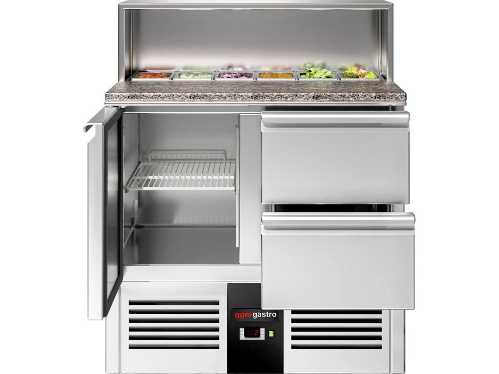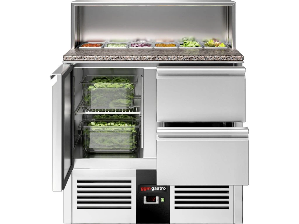 Stół Sałatkowy PREMIUM - 903 mm - nadstawna ze stali nierdzewnej dla 5x GN 1/7 - 1 drzwi & 2 szuflady