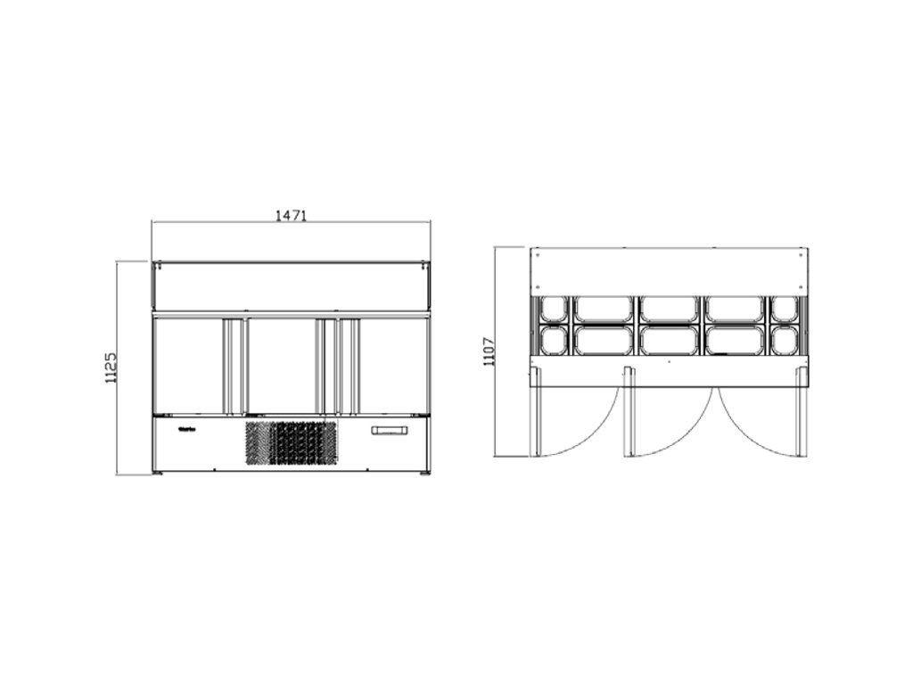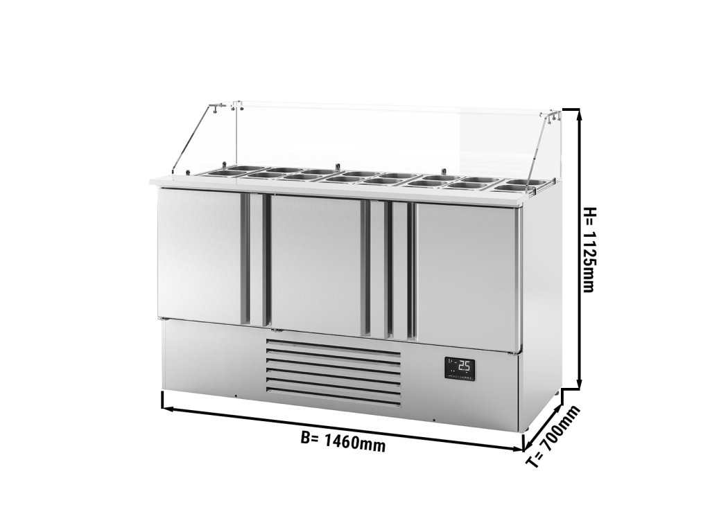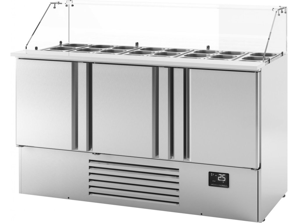 Stół Sałatkowy PREMIUM PLUS - 1460 mm - 3 drzwi - dla 9x GN 1/3 & 6x 1/6 GN - szklana nadstawna