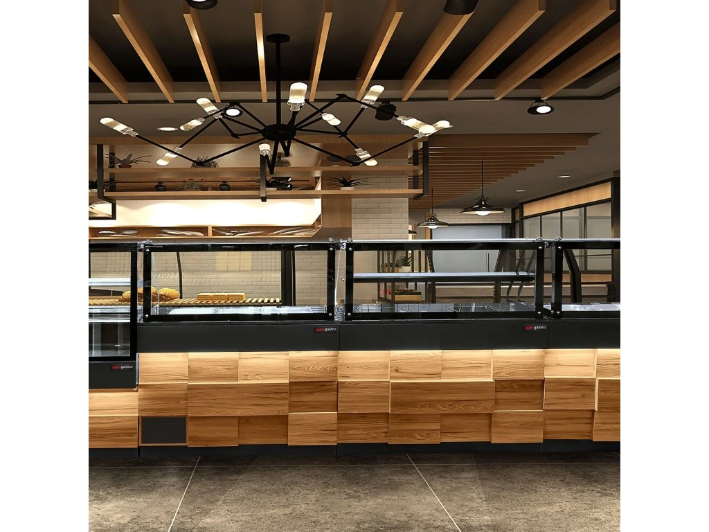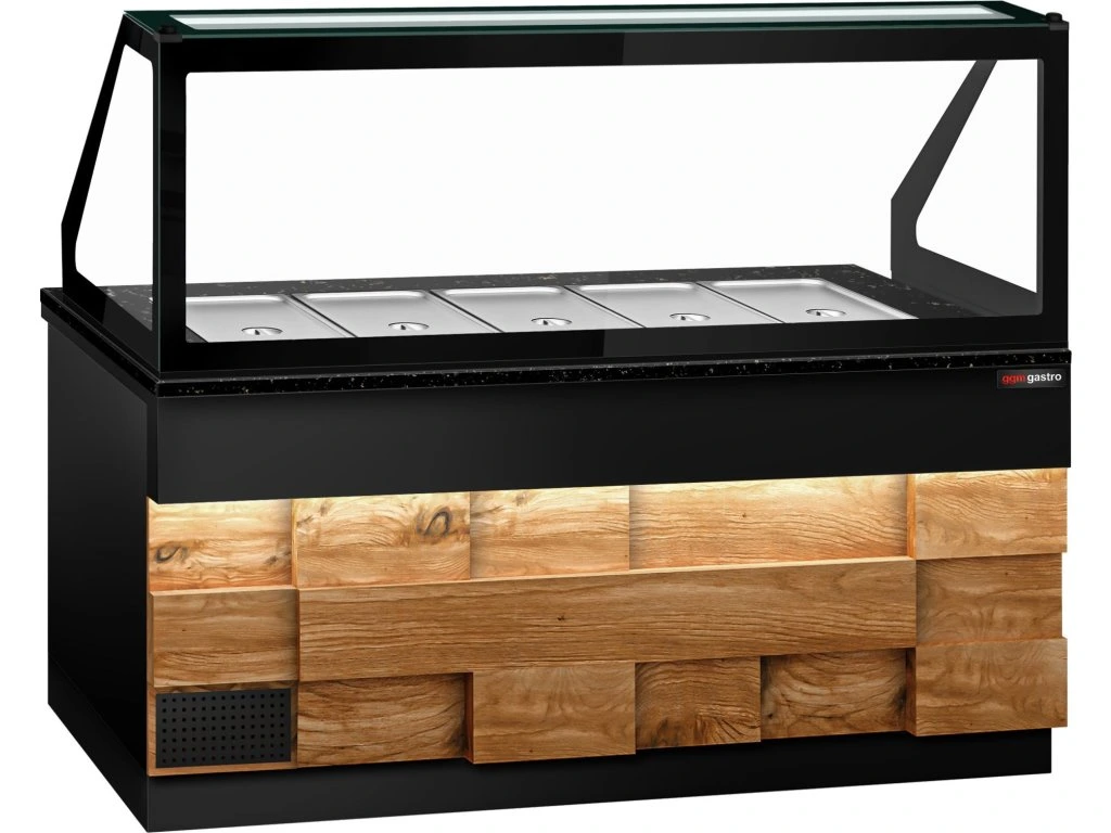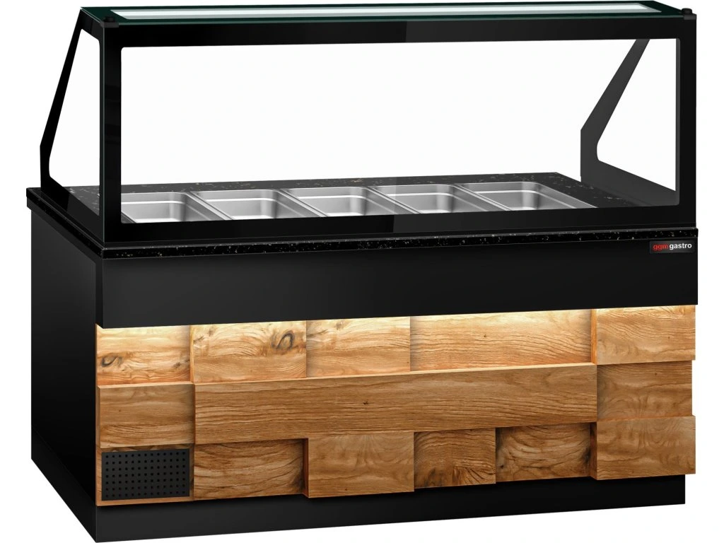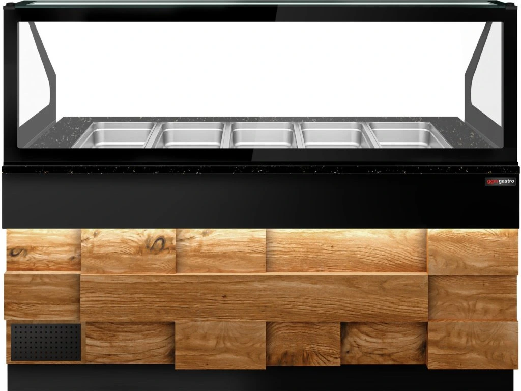 Stół Sałatkowy TORONTO - 2000 mm - drewniany panel przedni - 3 drzwi - do 5x GN 1/1 - blat z czarnego granitu