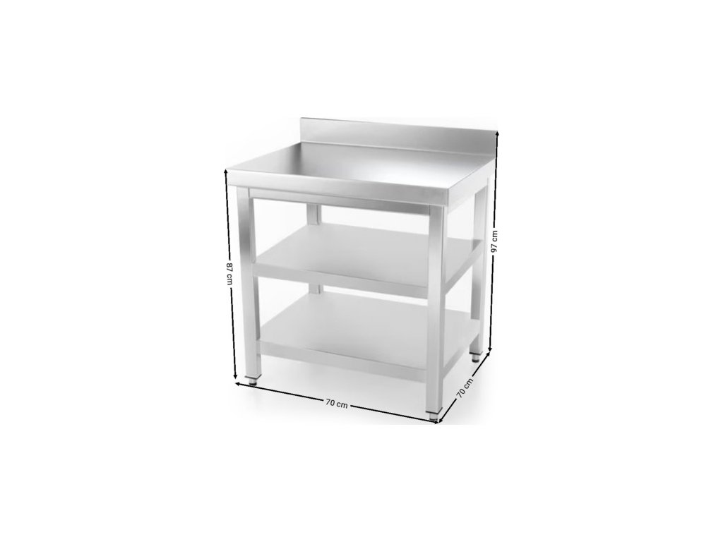 Stół warsztatowy ze stali nierdzewnej z dwiema półkami i tylną krawędzią - 600 x 700 mm